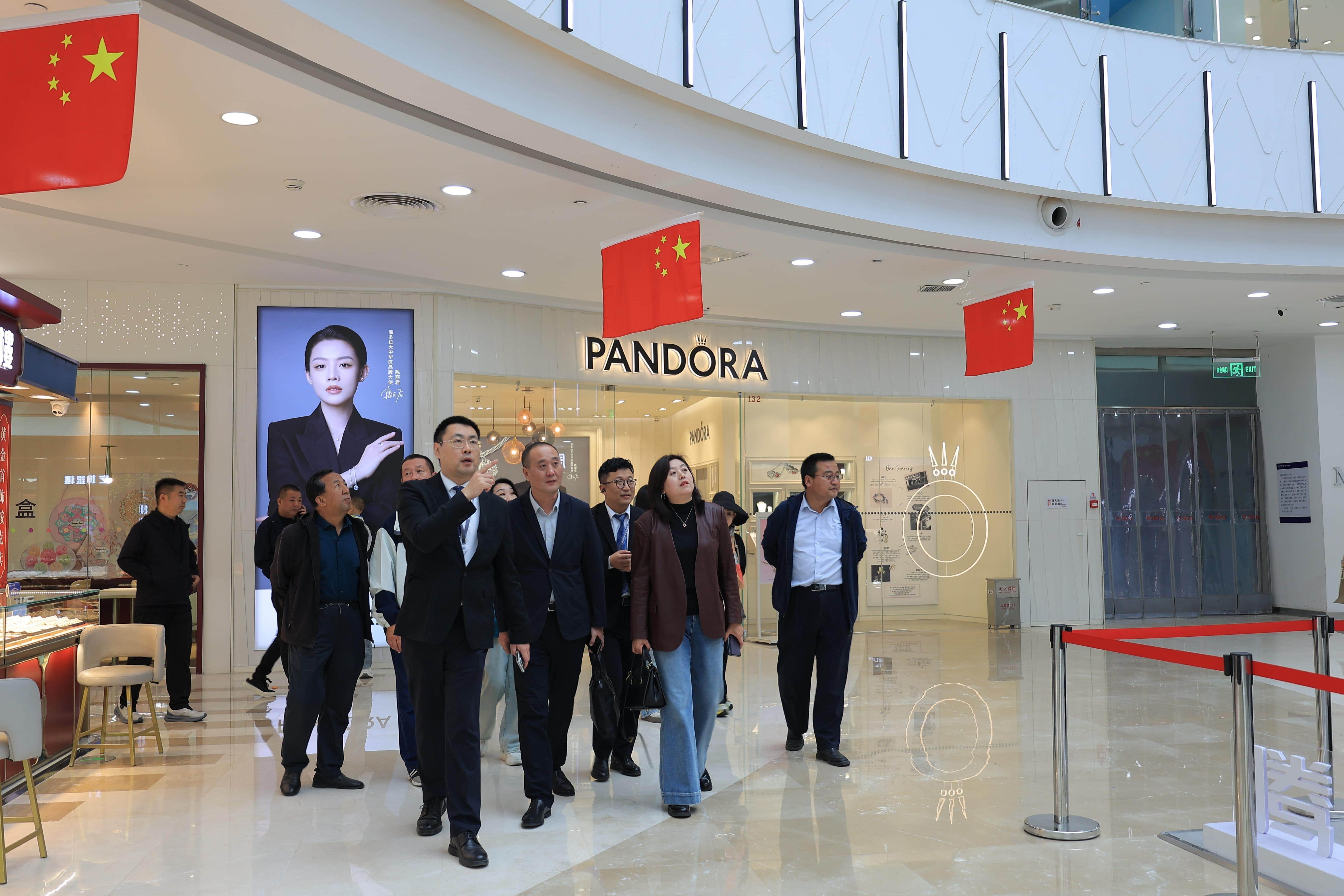 在呼和浩特赛罕万达广场,实地走访采风,总经理曹文龙(左一)介绍广场业态布局。(摄影:陈振国)