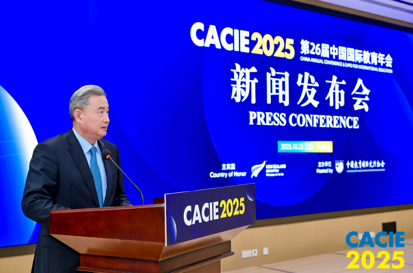 中国教育国际交流协会副秘书长王鲁新现场就第26届年会整体情况及亮点做介绍。据悉,在教育部的支持下,由中国教育国际交流协会主办的第26届中国国际教育年会(以下简称“年会”)主体活动将于2025年10月29日至11月1日在京举行。本届年会是贯彻落实《教育强国建设规划纲要》精神、主动服务高质量教育对外开放、推动构建人类命运共同体的切实举措,主题为“以教育见世界” ,主宾国为新西兰。作为亚太地区最具影响力的国际教育盛会之一,年会将汇聚全球60余个国家和地区的教育界领袖、专家学者及行业代表,共同探讨全球教育发展的新趋势与新机遇。