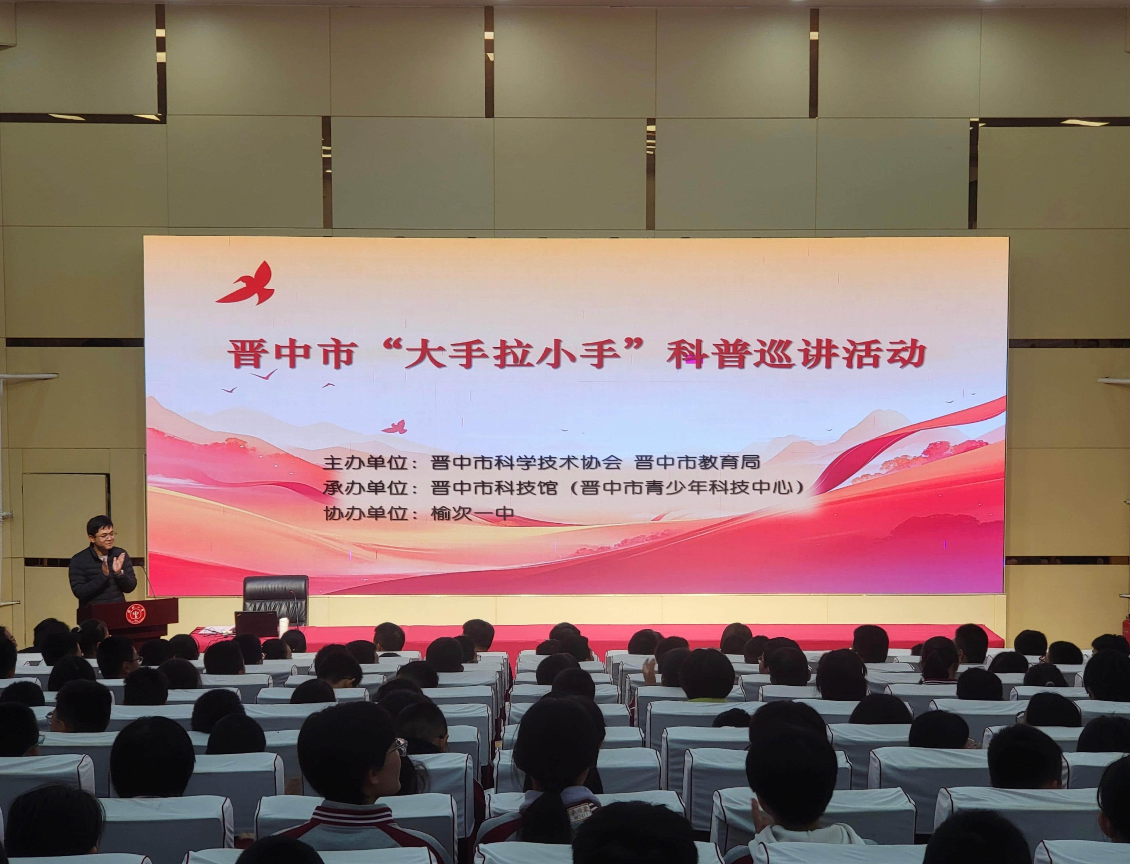 社区文化网讯(张晋 李锐娜 报道)10月23日,由晋中市科学技术协会、晋中市教育局联合主办,晋中市科技馆(晋中市青少年科技中心)承办,榆次一中协办的晋中市“大手拉小手”科普巡讲活动——“黄大年事迹报告会”在榆次一中隆重举行。晋中市科学技术协会党组书记、主席常许雁,党组成员、副主席苗社荣、胡全通,晋中市教育局副局长贺利捷,基教科科长岳丽,晋中市青少年科技中心副主任郭侠锋,榆次一中校长张成功与该校师生共同出席活动,在追忆先进事迹中感悟科学家精神,在聆听报国故事中凝聚青春奋斗力量。