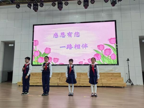 现场最动人的环节莫过于孩子们的感恩表达。二年级全体学生身着整齐校服,带来手势舞《谢谢你》表演。稚嫩的手掌随旋律轻舞,纯真的眼神满含敬意,用最质朴的方式传递着感恩之心,打动了在场每一位嘉宾。