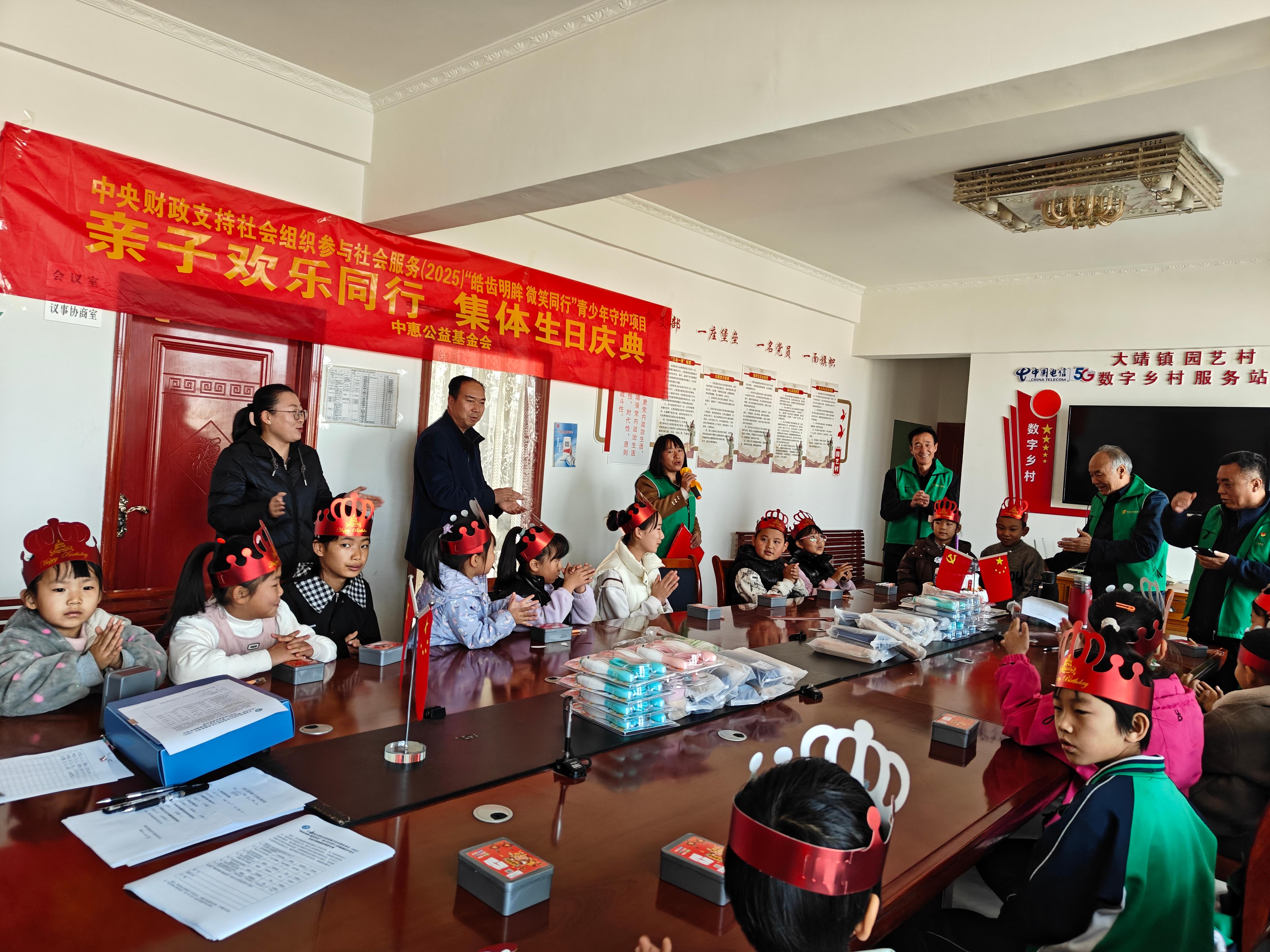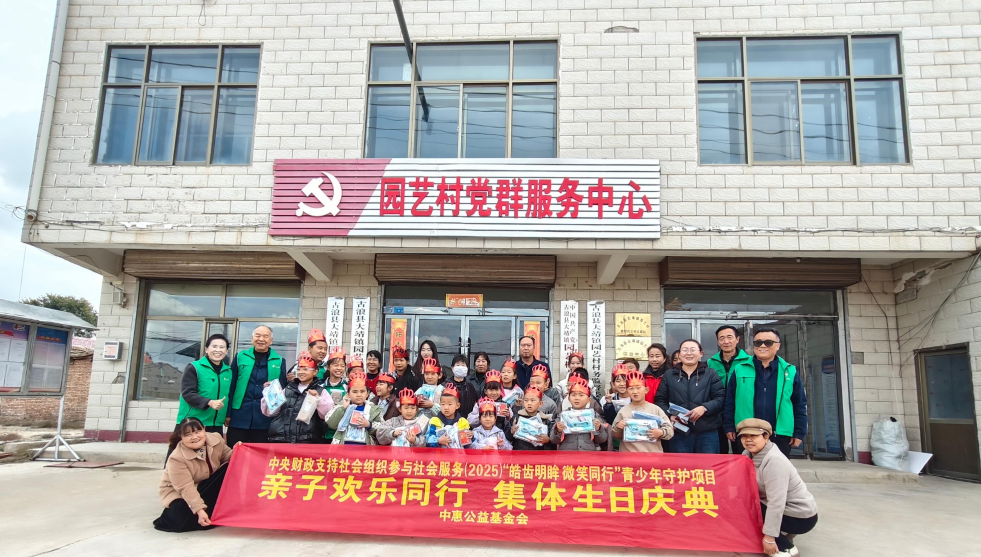 2025年10月25日上午,由中央财政支持、中惠公益基金会执行的“皓齿明眸 微笑同行”青少年守护项目,在古浪县大靖镇园艺村成功举办了第四场“亲子欢乐同行 集体生日庆典”活动。25名受益对象参加了活动,活动现场温馨洋溢,欢声笑语不断,为当地的孩子们及其家庭带来了一场充满爱与陪伴的欢乐聚会。