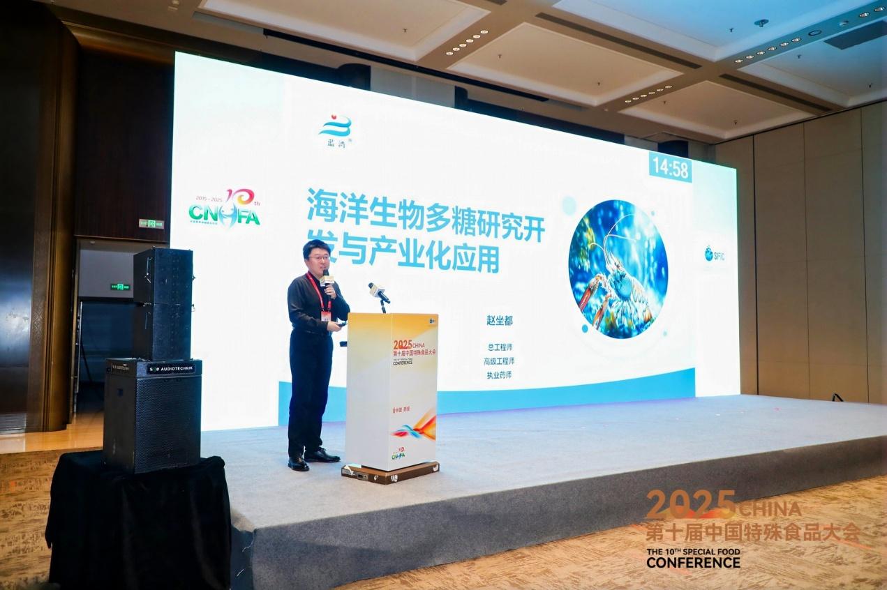 10月26日,厦门蓝湾科技有限公司总工程师赵坐都在“海洋生物多糖研究开发与产业化应用”主题报告中,从“国家视角:海洋经济与战略定位”、“海洋多糖:多糖原料创新研究与产业化应用”、“时代机遇”、“产业展望”四个维度,向中外代表介绍说:“国家海洋经济规划将海洋生物医药列为核心,特殊食品行业进入‘原料升级’阶段,海洋天然功能原料正成为催生更大规模市场的创新‘命门’。” 赵坐都说:“海洋经济在国之大局中已由量到质的加速转型,海洋活性物质研发与应用正处于战略高点。高创新性、绿色化、深海探索、海洋生物活性物质与医药技术成为重要发力方向。”