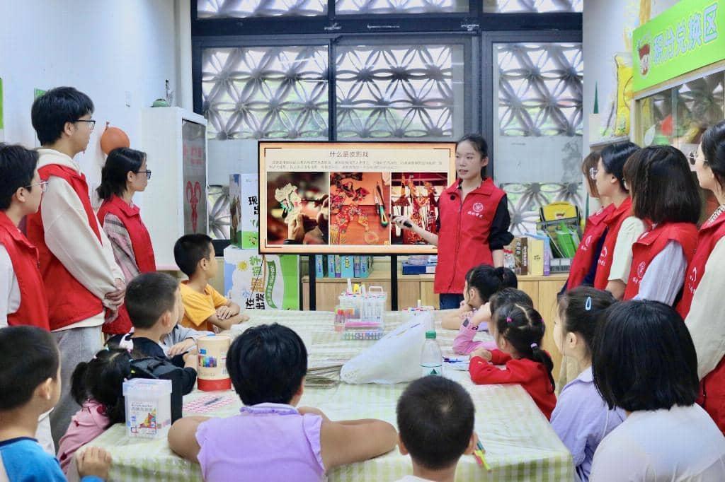 志愿者正在讲解皮影知识。陈玉涵 摄