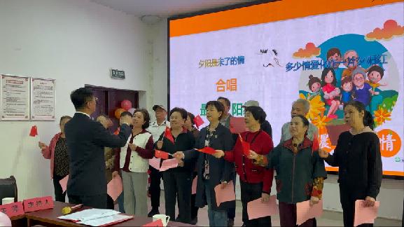在重阳佳节来临之际,为弘扬中华民族尊老敬老的传统美德,丰富退休人员精神文化生活。2025年10月28日上午,长沙市雨花区黎托街道广益社区在二楼多媒体室精心组织了一场以“霞映重阳,情暖桑榆,爱在金秋”温暖社保进万家为主题的重阳节活动。