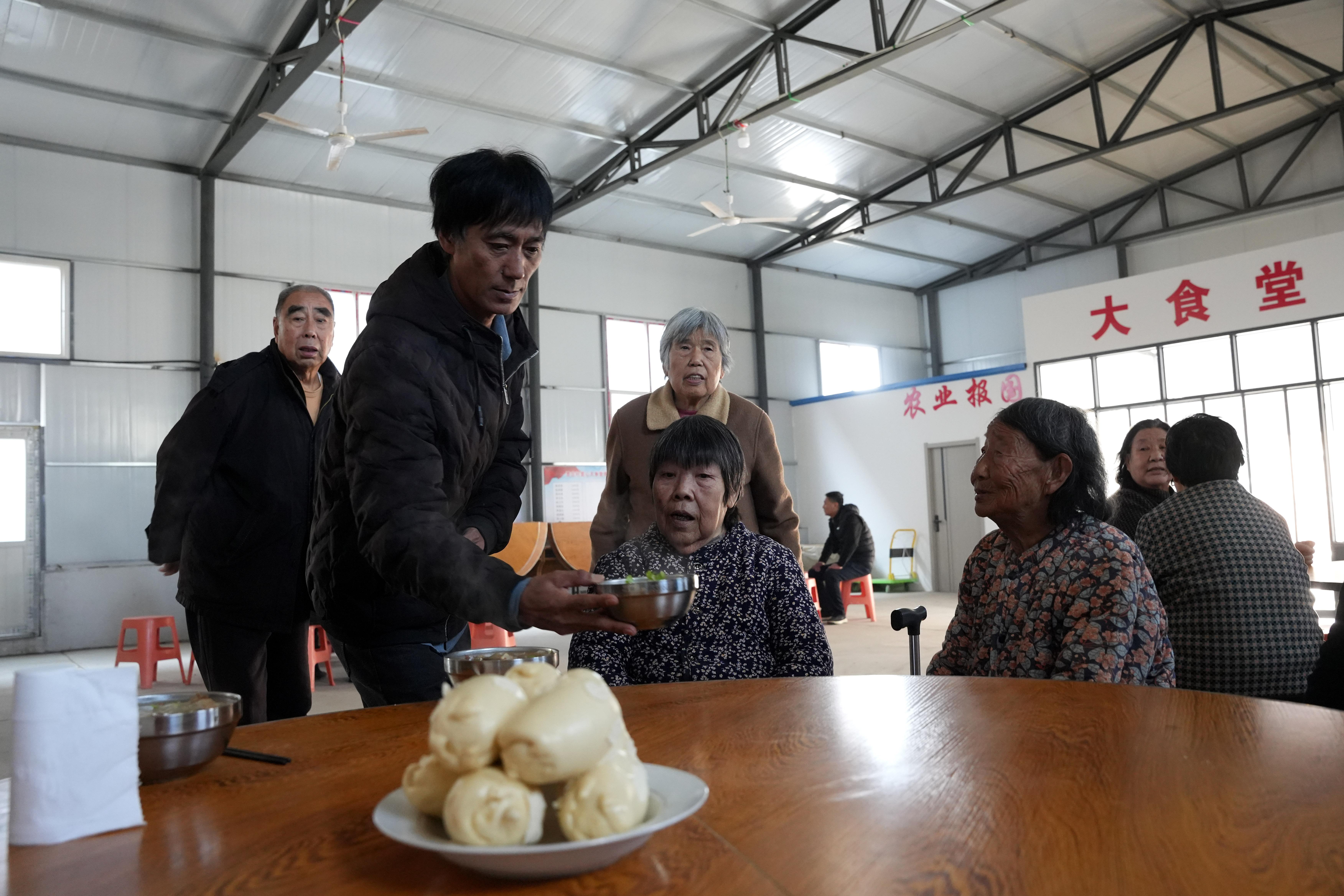 10月27日,河北省邢台市隆尧县莲子镇镇贾庄村敬老食堂,贾庄村村支书在为老人端饭。张冬茹 摄