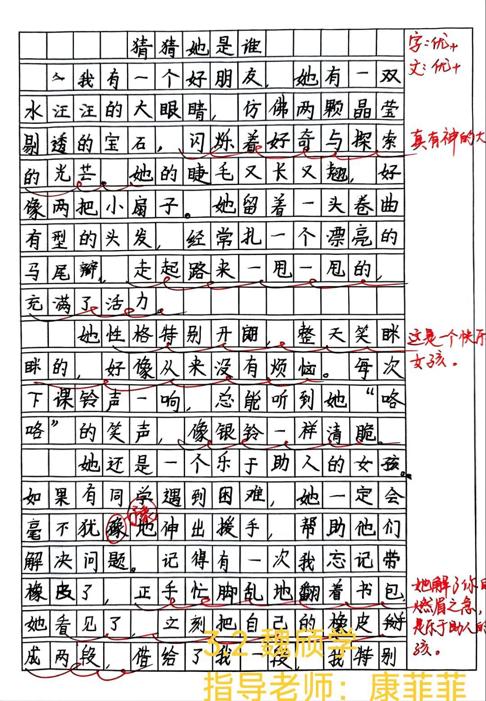 孩子们的进步,藏在一篇篇愈发精彩的作文里:三年级的小浩,从前写日记只会简单记录“今天吃了好吃的”,现在能写下“妈妈做的红烧肉,油亮亮的,咬一口满是肉香,我连汤汁都拌着米饭吃光了”;五年级的小雨,在老师“试着用环境描写烘托心情”的建议下,把“我考试没考好很伤心”改成“天空灰蒙蒙的,连平时叽叽喳喳的小鸟都不说话了,我攥着试卷,脚步沉重地走在回家的路上”。每当孩子们拿着批改后的作文,兴奋地和老师分享自己的新想法时,办公室里便满是成长的喜悦。