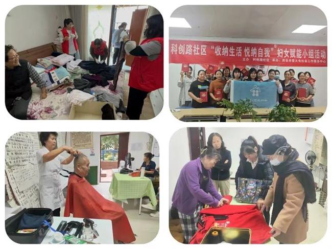 科创路社区“百事帮”互助队始终聚焦居民需求,提供精准服务。去年夏季,队员们通过“千户访”走访调研,发现辖区内全职女性在缓解压力、拓展社交方面存在迫切需求,为此特别策划了“星创暖邻最美女工”——“收纳生活,悦纳自我”妇女赋能小组,帮助她们为重返职场做准备。这一赋能活动成功播下了社区互助的种子。今年3月,它进一步生根发芽,催生出了常态化的暖心便民服务——“织梦人”裁缝铺与“创仪剪”理发站。这两个由“最美女工”志愿者组成的服务点,每周五在社区活动中心准时开放,以低于市场的价格为社区居民提供剪发、缝补等贴心服务。半年来,这个小小角落已成为居民信赖的“温暖驿站”,成功解决了辖区居民缝补难、无处去、费用高等难题。实现了从“赋能一个人”到“服务一个社区”的“万家和”良性循环。