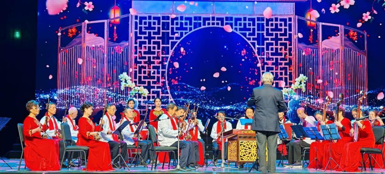 器乐与民俗表演同样吸睛:南三巷器乐合奏《欢庆》变奏曲节奏明快,渐次欢腾,恰似子孙承欢膝下的笑语,似秋日丰收的鼓点,更似代代相传的孝悌之声。罗城街道的舞蹈《黄河水从我家门前过》气势恢宏,舞者们用充满力量的动作展现了黄河的磅礴气势与人民的豪迈情怀。蓝湾社区的空竹表演《龙腾盛世》技艺精湛,翻飞的空竹以银线为阶,以风声为翼,带观众跃向云霄。阳光南社区的舞蹈《沂蒙颂》充满深情,红绸子裹着军民鱼水的热乎气儿,舞得人心里发暖。西峪一社区的葫芦丝演奏《北京的金山上》的弦子步踩着民族复兴的鼓点,跳得人眼里发亮。蓝湾社区与梧桐苑社区共同带来大合唱《我的祖国》,熟悉的旋律响起,全场观众也一同加入合唱,每一句歌词都饱含着对祖国的热爱与祝福。