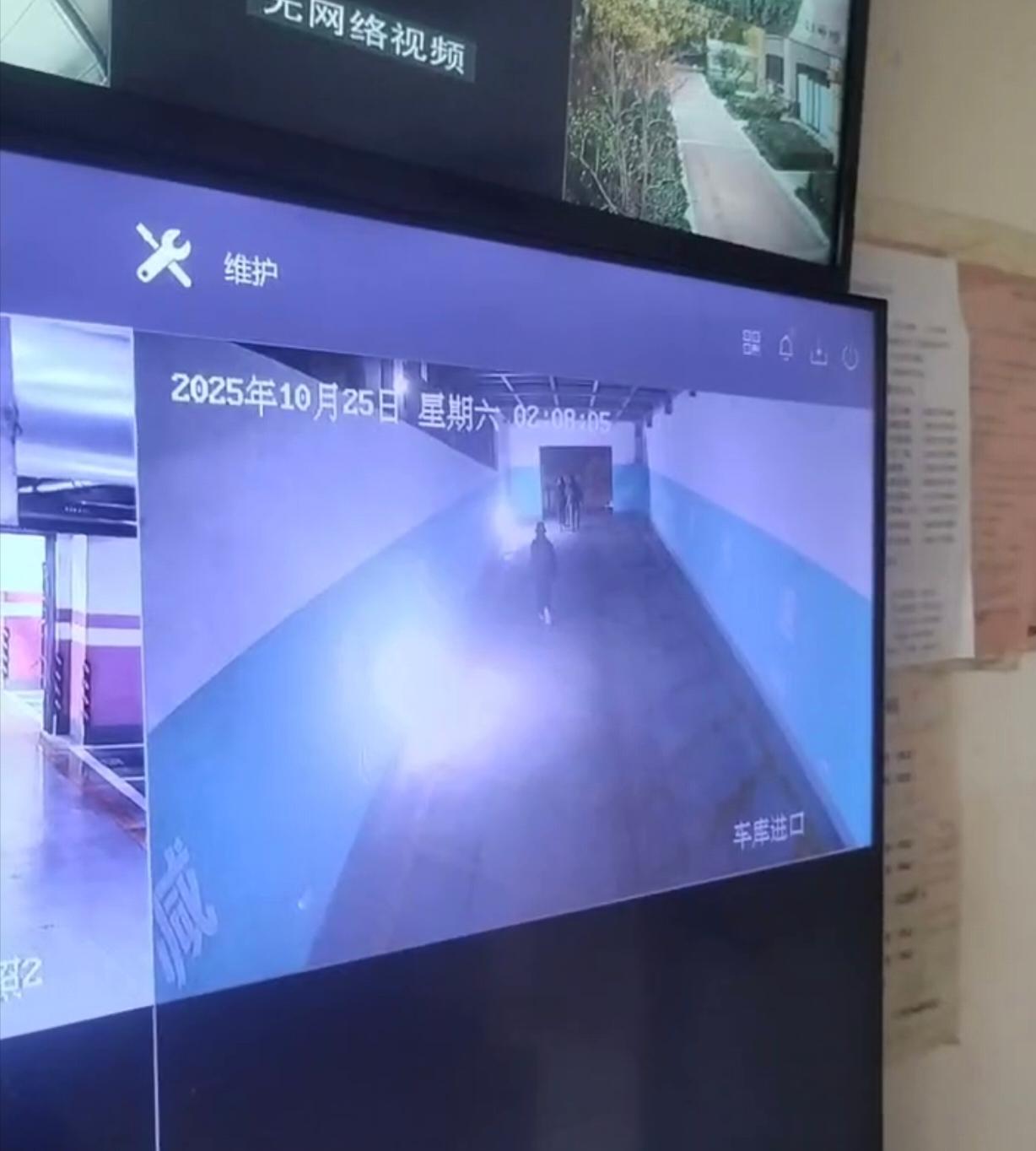 担心业主的车辆和车内物品受损,金书军和同事一商量,同事负责在监控室内紧盯两个陌生男子的行动,金书军去车库内悄悄地跟踪两名男子(见图)。这两个人翻遍能打开的车辆,然后取走能取走的东西,随后这两个人准备要逃离小区时,金书军大吼一声“不要跑”,并冲向一名男子,将那名男子扑倒在地。两个人扭打在一起。另一名男子见状撒腿就跑。