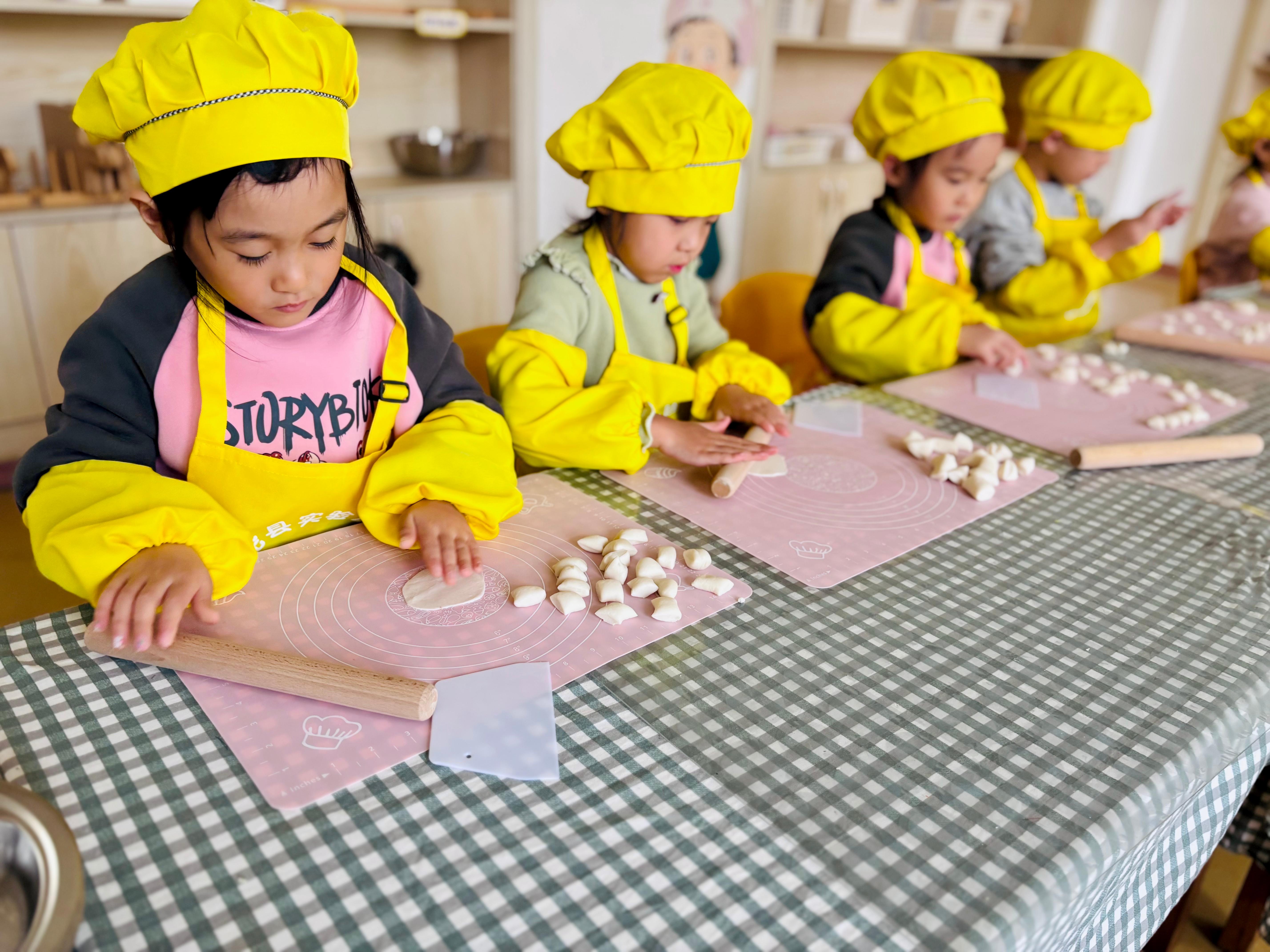 当日,隆尧县实验幼儿园也举办了以“立冬”为主题的包饺子活动。活动中,孩子们围在餐桌旁,在老师的指导下参与擀皮、填馅,将好奇与快乐裹进圆滚滚的饺皮里,揉捏之间,形态可爱的饺子新鲜“出炉”。孩子们开心极了,活动室里笑声不断,定格冬日里最暖心的成长记忆。