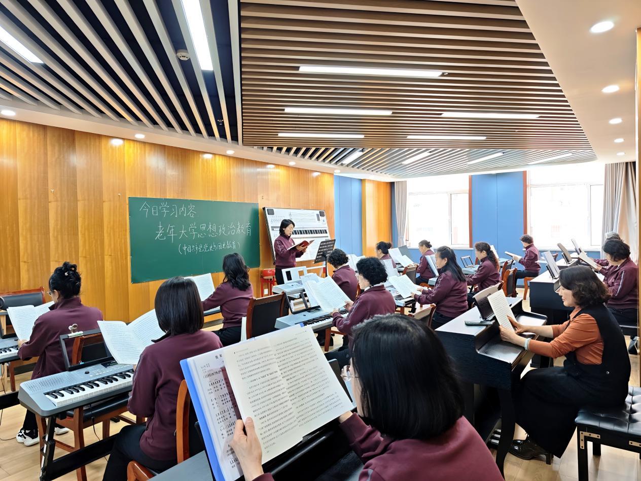思政教育课紧扣老年学员的认知规律与实际需求,围绕党的创新理论、社会发展趋势等核心内容开展。授课老师创新教学方式,结合身边发展变化与鲜活案例,用通俗语言解读理论知识,生动阐释国家政策内涵与时代发展方向,帮助老年学员更新知识结构、转变思想观念,清晰把握社会发展脉络。课堂上,学员们认真聆听、积极互动,主动分享生活中的发展变化与学习感悟,在轻松愉悦的氛围中深化对国家和社会的认同感。