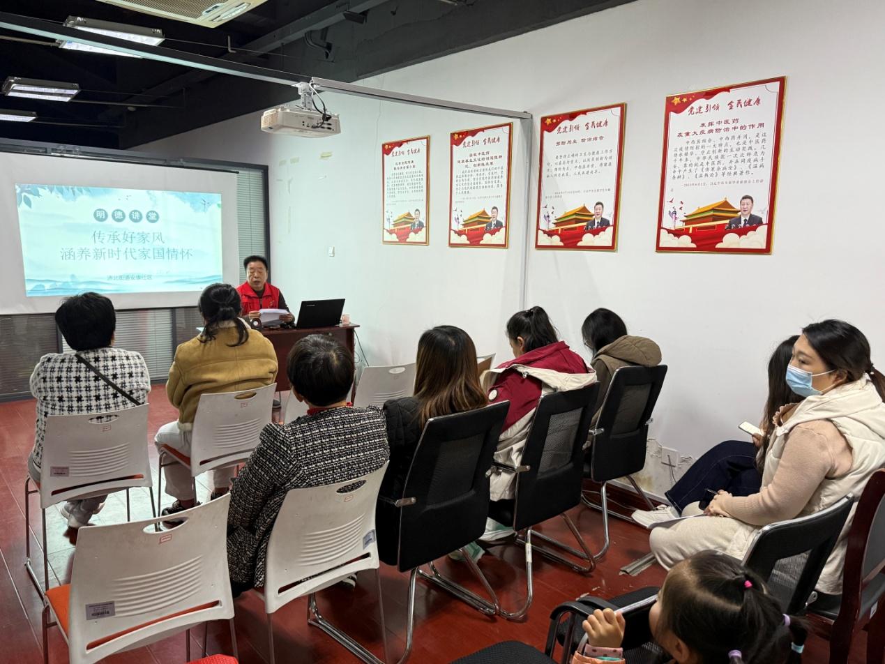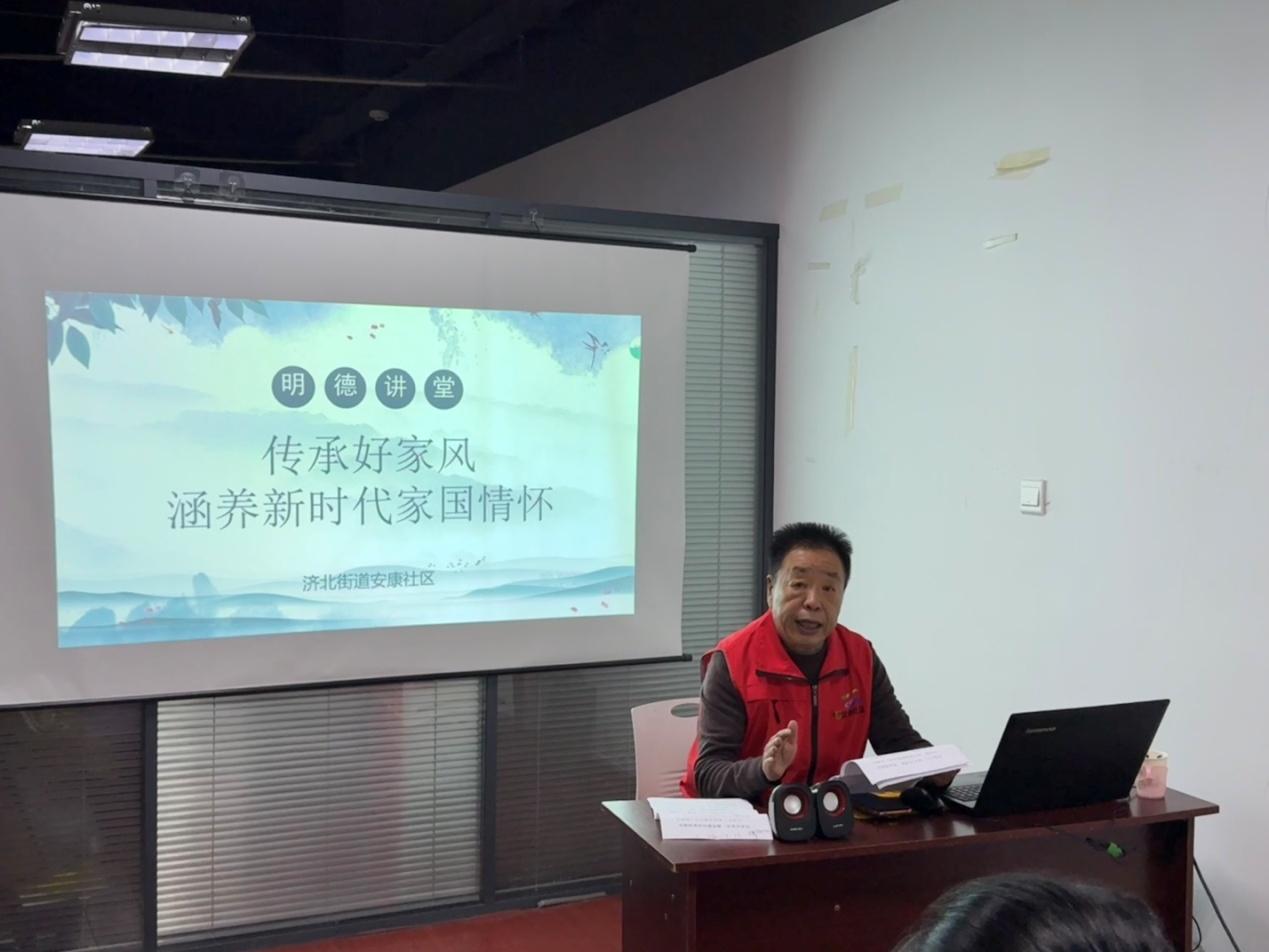 11月5日下午4时,山东省济南市济阳区安康社区会议室里温暖如春,一场以“传承好家风,涵养新时代家国情怀”为主题的特殊宣讲正在进行。主讲人是社区“银龄先锋”宣讲队队长冉庆亮,台下坐着的有社区干部、学生家长,还有闻讯赶来的普通居民。