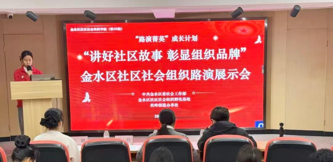 社区文化网讯(葛显勇)11月5日,由金水区委社会工作部指导金水区社区社会组织孵化基地策划的“路演菁英”成长计划第三阶段——“讲好社区故事 彰显组织品牌”路演展示会在杜岭街道党群服务中心成功举办。此次活动为“路演菁英”成长计划画上圆满句号,标志着金水区在社区社会组织品牌与人才梯队建设上迈出坚实一步。“路演菁英”成长计划构建“精准培训-实践优化-舞台展示”三段式培育模式。