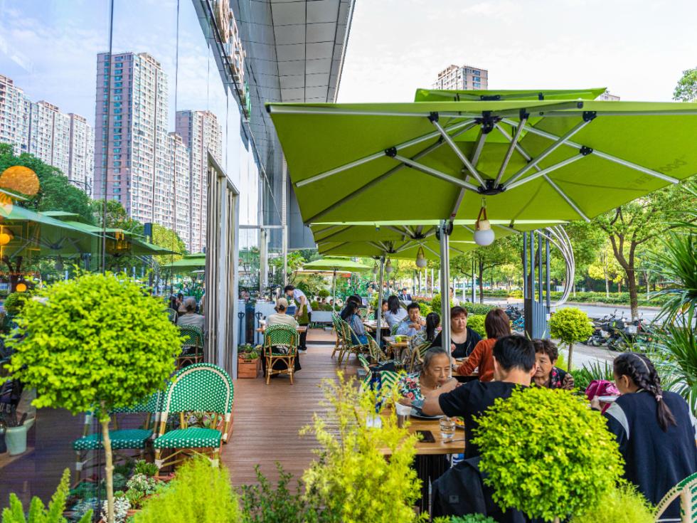 午休时刻,职场人李先生约着客户走进平安悦坊。小花园内绣球花正开得热烈,遮阳伞下的餐桌铺着素雅餐布,透着几分闲适;远处咖啡外摆区飘来醇厚香气,CBD的忙碌仿佛被隔绝在外。“没想到办公楼下有这么安静的地方。”客户忍不住称赞。李先生笑着解释:“这是我们这里的‘慢生活商业区’。”