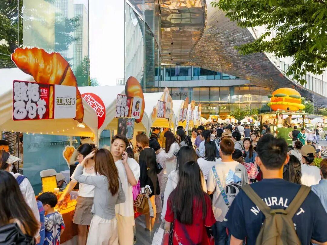 周五傍晚6时,来福士TZHOUSE前广场的主题市集成了年轻人的主场。文创摊位的手作饰品缀满巧思,轻食摊位的网红小吃冒着热气,无人机载着饮品在人群中灵活穿梭,AI巡逻机器人以柔和语音指引方向。“白天喝咖啡,晚上看演出,这‘日咖夜酒’也太酷了!”大学生周宇举着手机拍夜景,广场灯光渐亮,与楼宇光影呼应,年轻人们围坐说笑,满是活力。