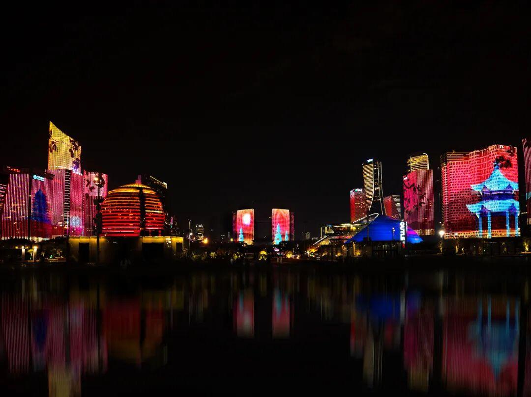 晚上7时30分,钱塘江沿岸灯光点亮,在40余栋高楼外立面上铺展开壮丽画卷,先见雷峰塔沐秋夕温润而立,金桂伴月光翩跹起舞;再观钱江潮浪奔涌而来,光影投映江面,随波轻漾。灯光秀片源分常态(含春、夏、秋、冬四版本)、节日、重大会议(活动)三大类,可精准匹配城市灯光秀氛围营造与保障需求。