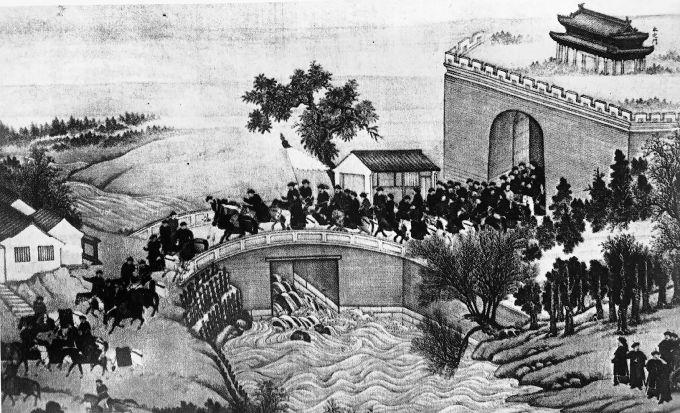 永定门与北京中轴线一样,见证了中国从旧中国迈向新中国的伟大历程。明崇祯2年的1629年,袁崇焕部4万人与皇太极亲率满蒙八旗劲旅10万余众鏖战于永定门外沙子口一带,明军4 位总兵满桂、孙祖寿为守住永定门战死,黑云龙、麻登云被俘;明崇祯十七年的1644年,李自成军入京,明守将刘文眼见城门失守,自杀殉国。