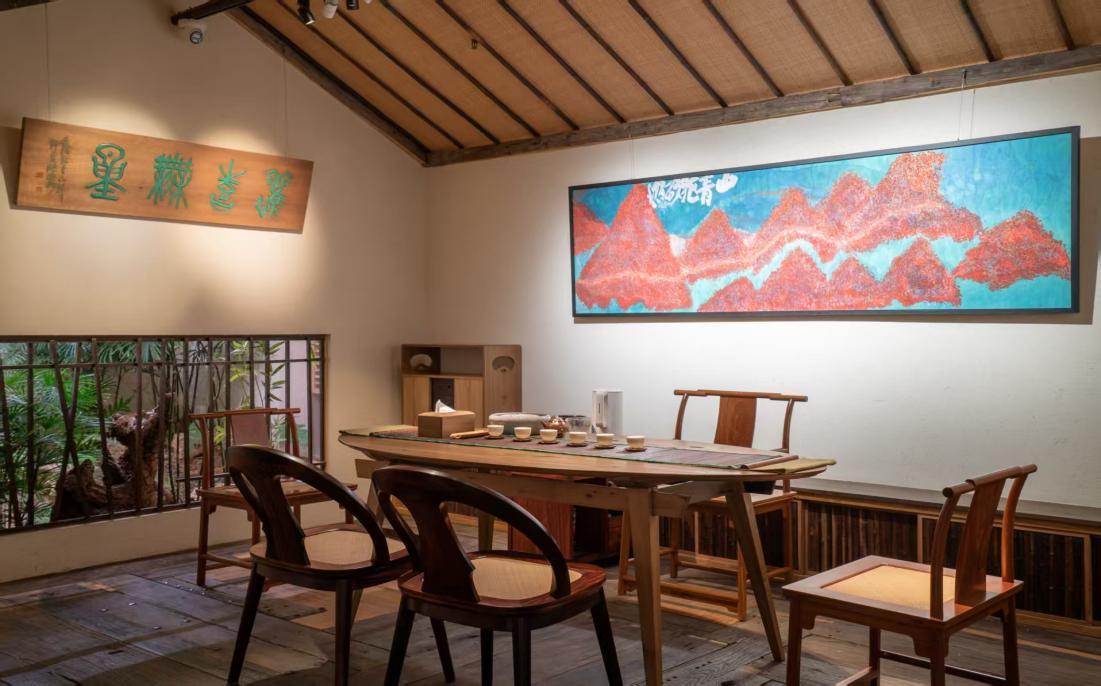 本次展览以“大匠之门”为主题,不仅是传统家具的集中陈列,更打造了一场“穿越时空的木艺盛宴”。展品分为六大展区,涵盖复刻清宫紫檀家具、宋金明清经典家具、积庆堂原创及大师共创作品,还还原了传统茶室空间、迎宾空间与现代生活意境空间,全面呈现中式家具的多元形态与文化内涵。作为展览的“重头戏”,宋金时代法澍大师大禅椅复刻品意义非凡。该禅椅是现存可询记载中历史最久远的佛门禅椅,采用纯榫卯结构,以木制髹漆为基底,辅以罕见的描金、沥粉和彩绘工艺,造型古朴庄严,既是宋金家具工艺的巅峰体现,也是佛教文化与木作艺术交融的珍贵实物佐证。