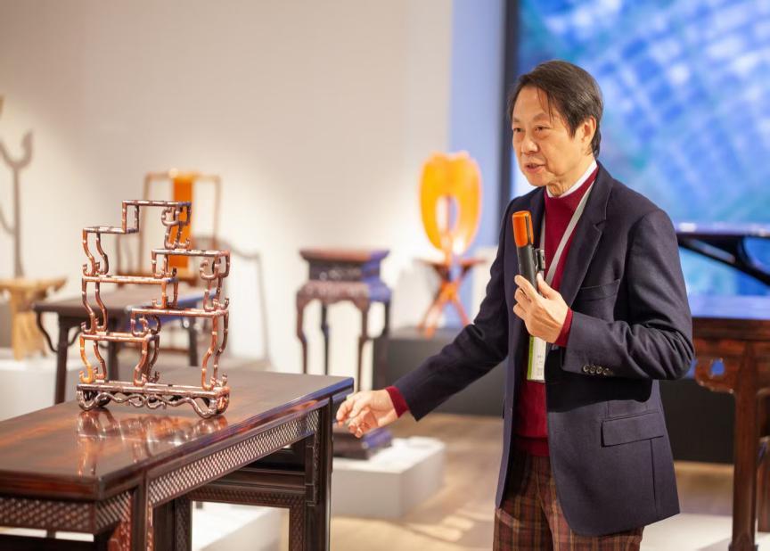 积庆堂创始人梁伟鸿介绍,中式传统家具以明清家具为代表,其设计理念、制作工艺与审美情趣独具特色。地道的传统中式家具不仅契合人体力学、使用舒适,更秉持环保理念——纯榫卯结构、不上油漆,实现“0污染”,且随着使用时间推移,木材色泽包浆的变化会让古典美感愈发凸显。创立25年来,积庆堂堂号由张大千入室弟子、国画大家方召麐题写,始终坚持“复刻”与“原创”双轨并行。在复刻领域,积庆堂严格遵循传统工艺,以“1:1复刻”为标准,对比传统实物而非出版物图片,采用纯手工精雕细刻,确保作品规格、工艺与原作高度一致;在原创领域,积庆堂融合现代美学与国际视野,2016年为韩国古建筑艺术博览会设计的虎皮纹大漆屏风,以大漆竹帘的虎皮纹光学效果呼应韩国老虎图腾;与英国工业设计大师Ross Lovegrove合作的「LIFEFORM COLLECTION」系列,他的灵感来自自然界及未来主义,其作品以揉合自然美态与超新科技的有机设计享负盛名。作品很具意义,因为它不但表现了对自然界有机组织和结构的热爱,还反映了东西方在美学、物料、科技和工艺方面的交流。