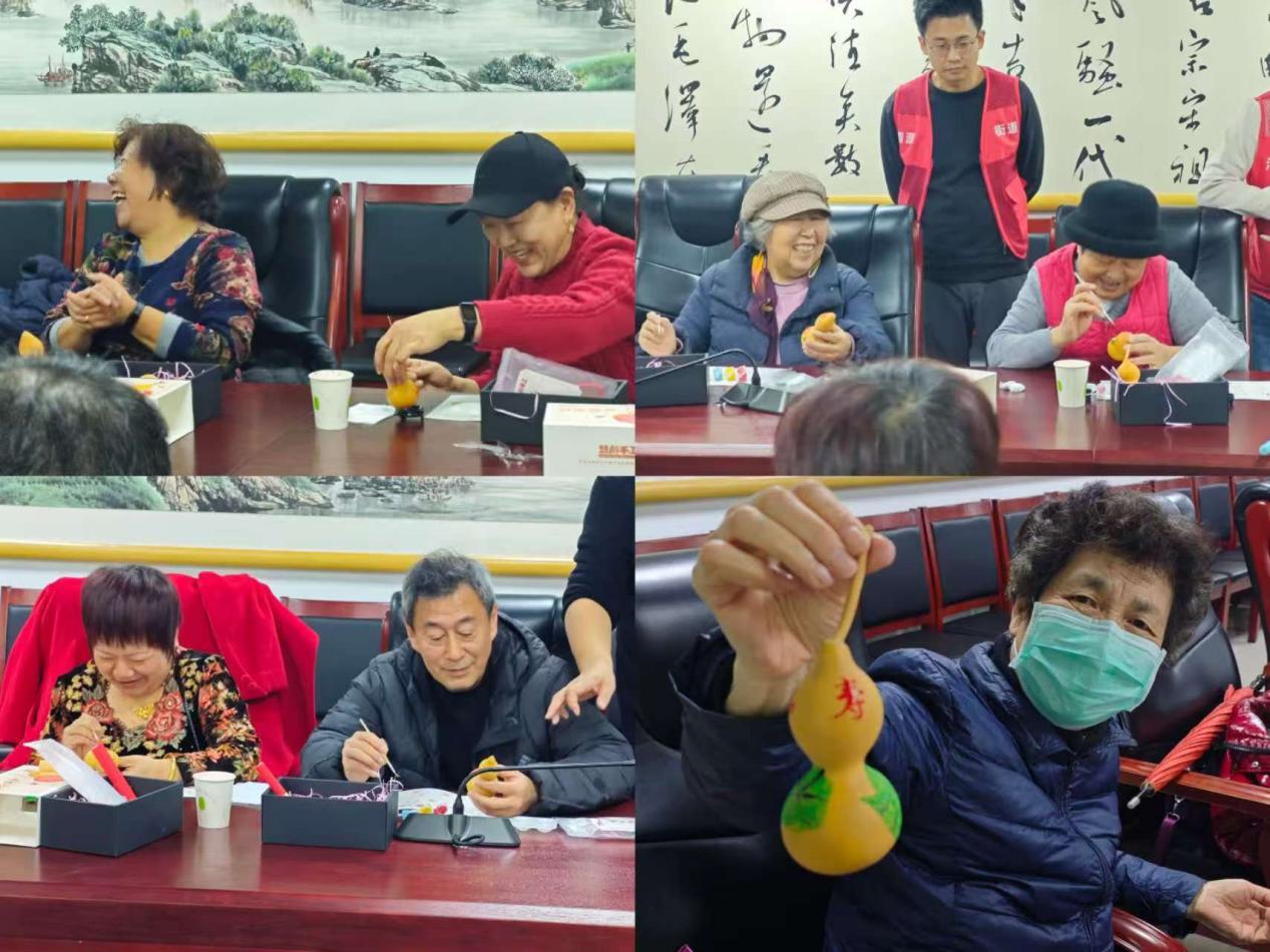 "这个活动真是太有意思了!"正在专心绘制的李阿姨笑着说,"既动手又动脑,还能了解传统文化,感觉特别充实。"她手中的葫芦上,一朵牡丹正徐徐绽放,寓意着富贵吉祥。其他老人也纷纷展示自己的作品,有的绘着象征吉祥如意的金鱼图案,有的点缀着象征幸福的祥云纹样,每一件都独具特色,展现着老人们丰富的想象力和创造力。