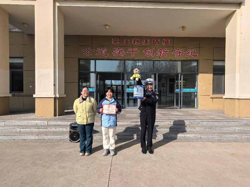 以榜样引领成长,用行动践行文明。此次颁奖既是对孙莹同学个人成就的肯定,也是对烟台市莱山区院格庄初级中学全体学生的深切期许。希望同学们以孙莹为榜样,积极学习交通安全知识,自觉遵守交通规则,让文明交通的意识在心中生根发芽,争做交通安全的小小宣传员和践行者。让我们携手共筑平安校园,用行动诠释新时代青少年的责任与担当!(通讯员 梁翠玲 刘守敏)