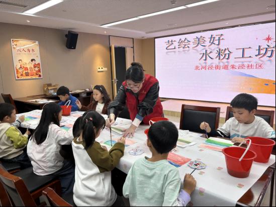 11月8日,苏州高铁新城(北河泾街道)朱泾社区举办了“泾彩童心”水彩工坊活动,带领辖区儿童开启一段奇妙的水彩之旅。