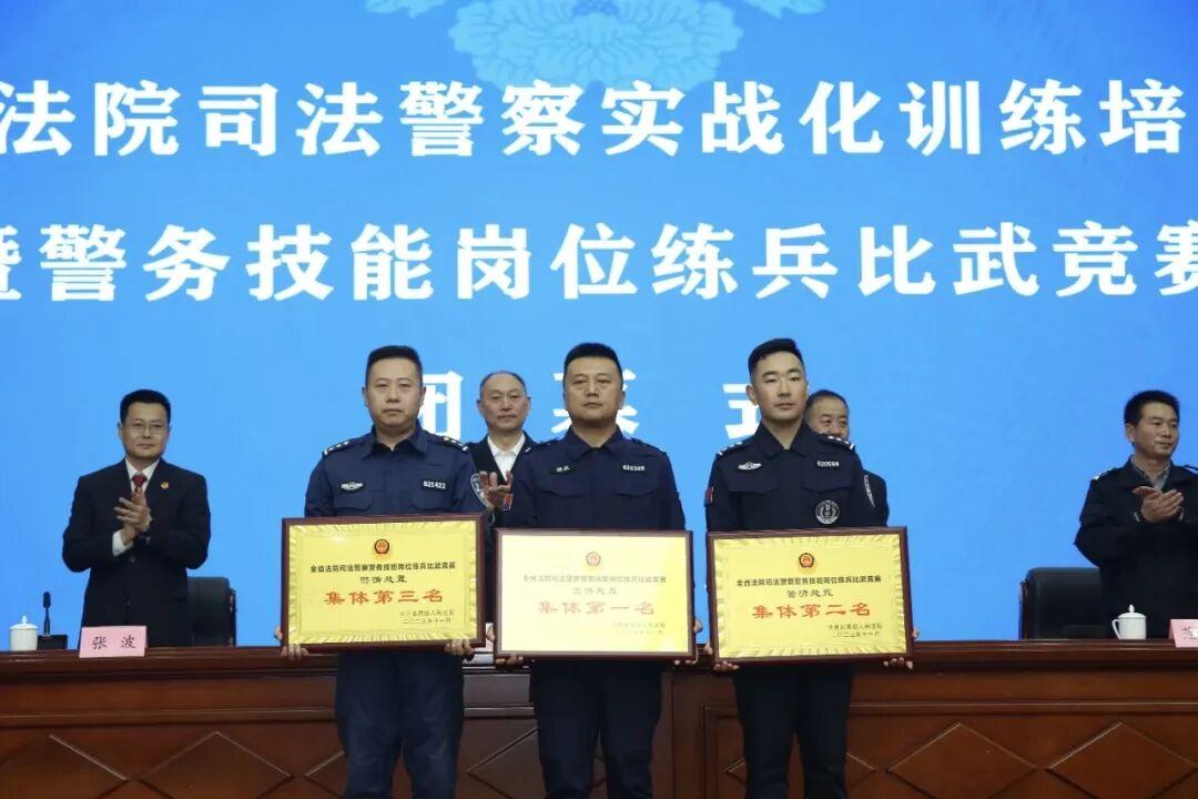 近日,甘肃全省法院司法警察警务技能岗位练兵比武竞赛在舟曲圆满落幕。甘肃省酒泉中院代表队在“警情处置”单项竞赛中拔得头筹,斩获集体第一名,充分展现了突出的实战能力和高效的团队协作水平。同时,代表队还荣获理论考核集体第六名及优秀组织奖。