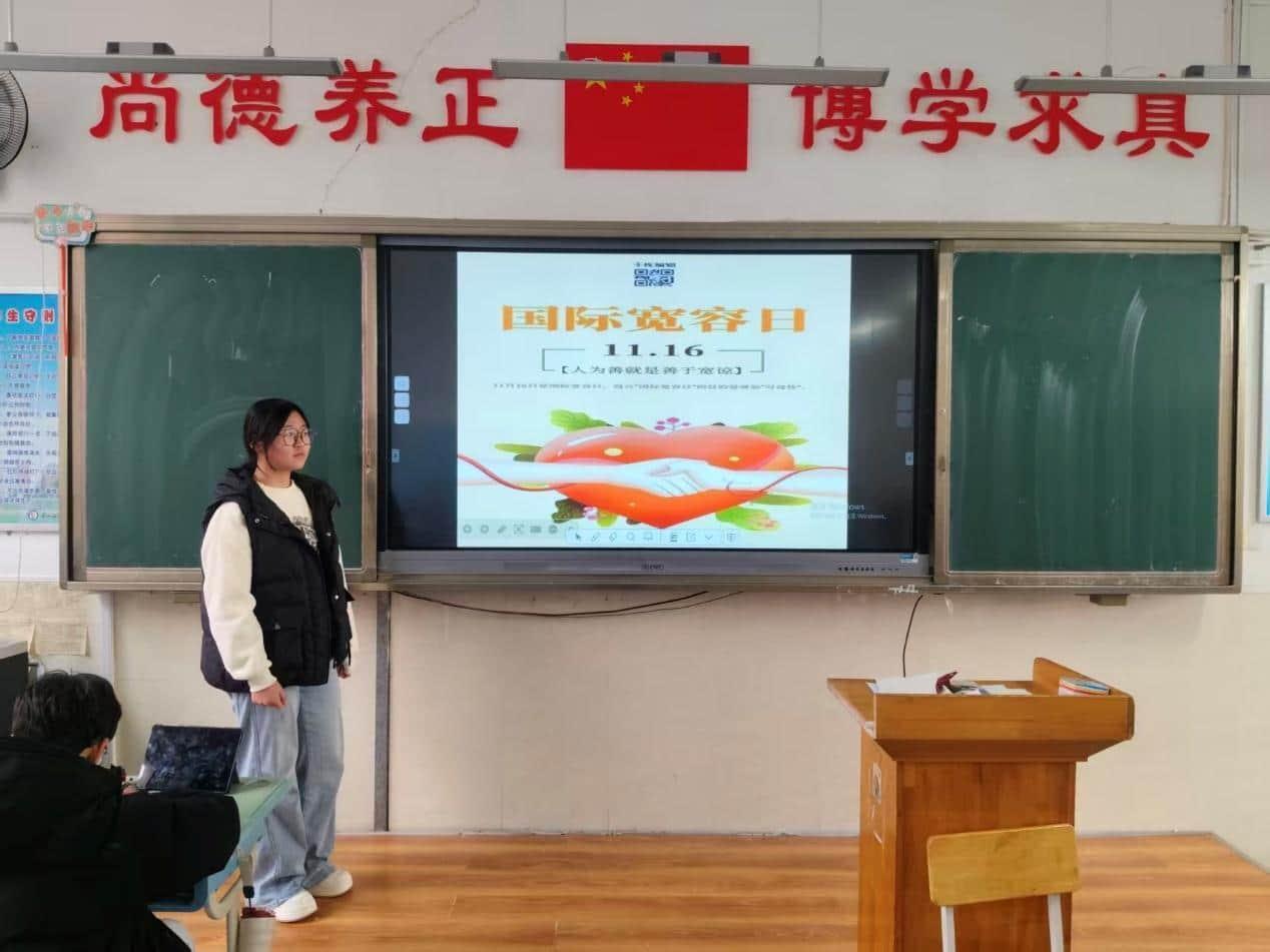 教育不仅是知识的传授,更是人格的塑造。我们希望以此次主题教育为契机,将宽容的种子深植学生心田,让尊重、理解、友善成为校园最美的风景线,为培养具有全球视野和博爱胸怀的时代新人奠定坚实基础。此次主题教育如同一场润物无声的春雨,在校园内营造了互谅互让、和谐共处的良好氛围,有力推动了平安、文明校园的建设。(通讯员:任海英 曹晏宁)