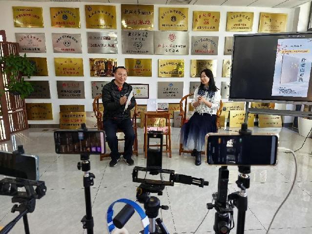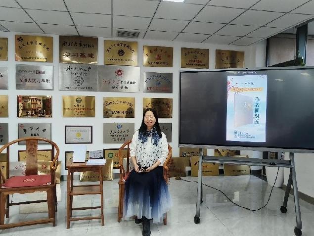 优秀女诗人一米阳光(赵宏娟)携诗集《梅朵》做客《作者面对面》直播活动(王月 摄)