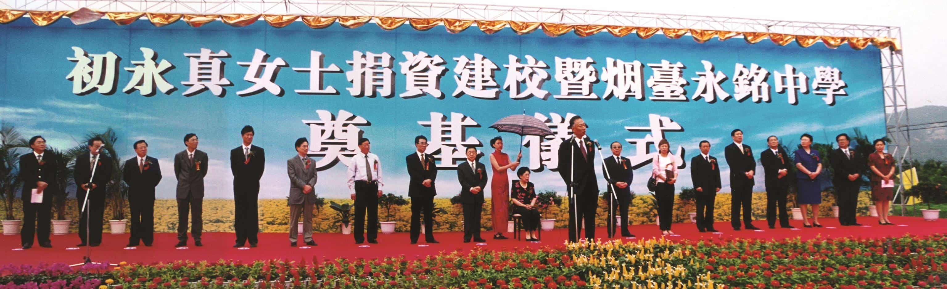 烟台永铭中学是由台胞初永真女士和郭台铭总裁捐资3000万元,莱山区政府配套6000万元兴建的一所高标准现代化初级中学,占地100亩,总建筑面积2.7万平方米。2003年7月奠基,2004年9月建成并招收第一批学生。