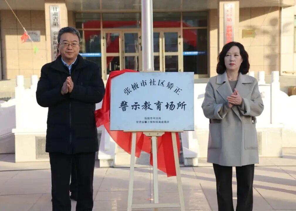 潘映军、宋宗萍一同为张掖市社区矫正警示教育场所揭牌