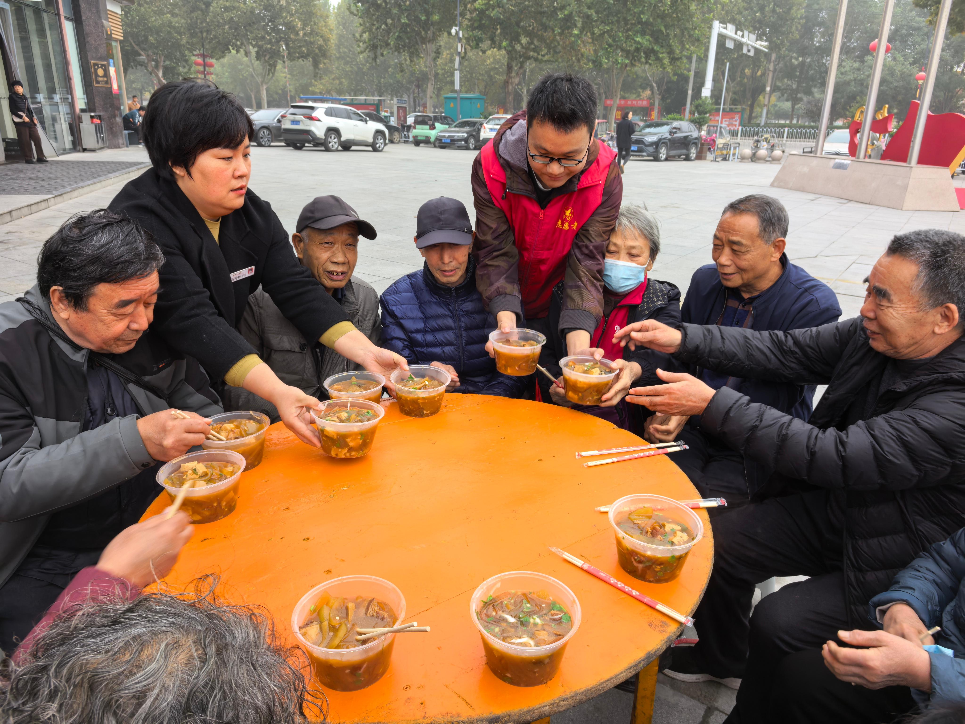重阳节当天,隆尧县隆平社区合鑫国际小区为老年人提供重阳节大锅菜。