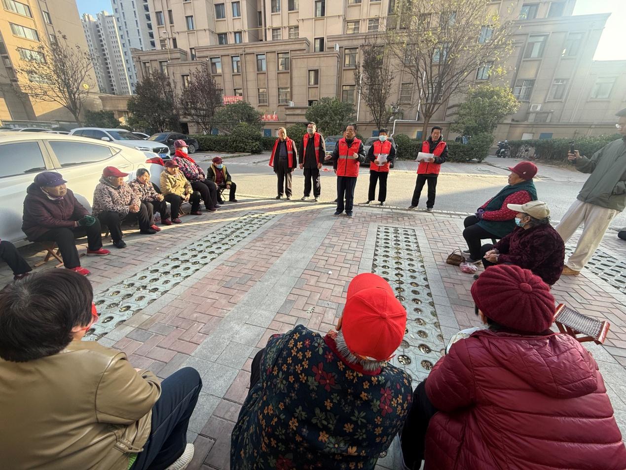 11月26日下午,山东省济南市济阳区“银龄韶韵”老干部宣讲团走进济北街道正安社区徐家鑫苑小区,围绕“反诈骗、防范非法集资”为小区老年人开展了主题宣讲活动,用接地气的方式筑牢老年群体财产安全防线。