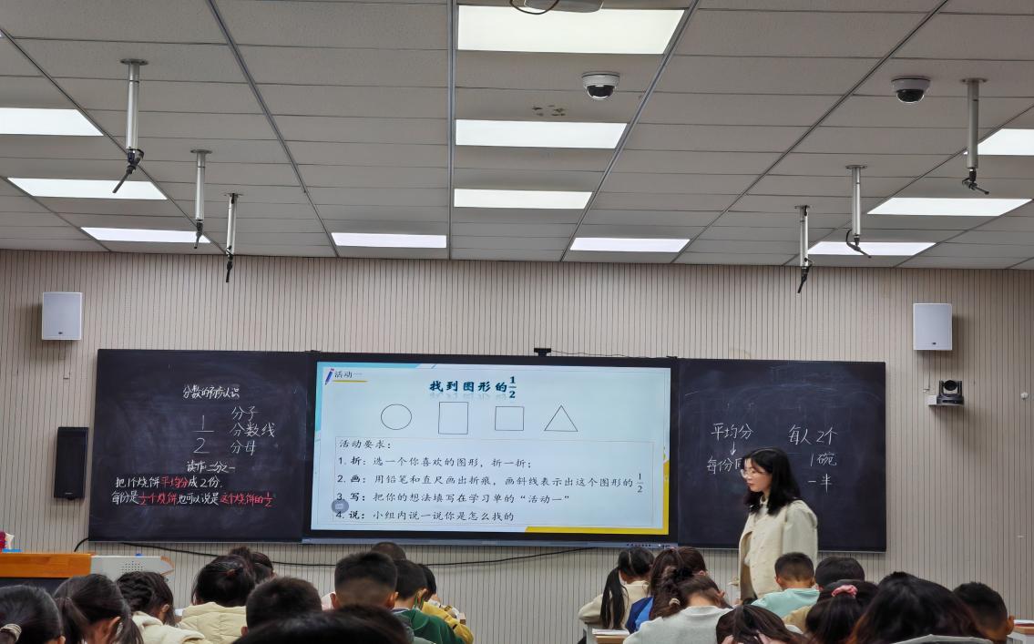 总结本次调研,这节课通过“折一折、画一画”让学生亲身经历几分之几的形成过程,自然引入数学符号,并深化理解从几分之一到几分之几的过渡,引导学生数出几个几分之一,体会分数既表示具体量还表示部分与整体的关系。板块设计体现了现实情境、数学建模和概念应用的完整过程,在大单元视角下,为学生后续学习构建了扎实的认知结构。活动强调以大单元整体教学理念为指导,通过设置大问题、提炼大观念、规划大板块,真正实现了从教知识到育素养的转变,让数学课堂成为学生思维生长的沃土。本次片区调研至此圆满结束,为区域数学教学提供了宝贵经验。(通讯员:战泳霏)