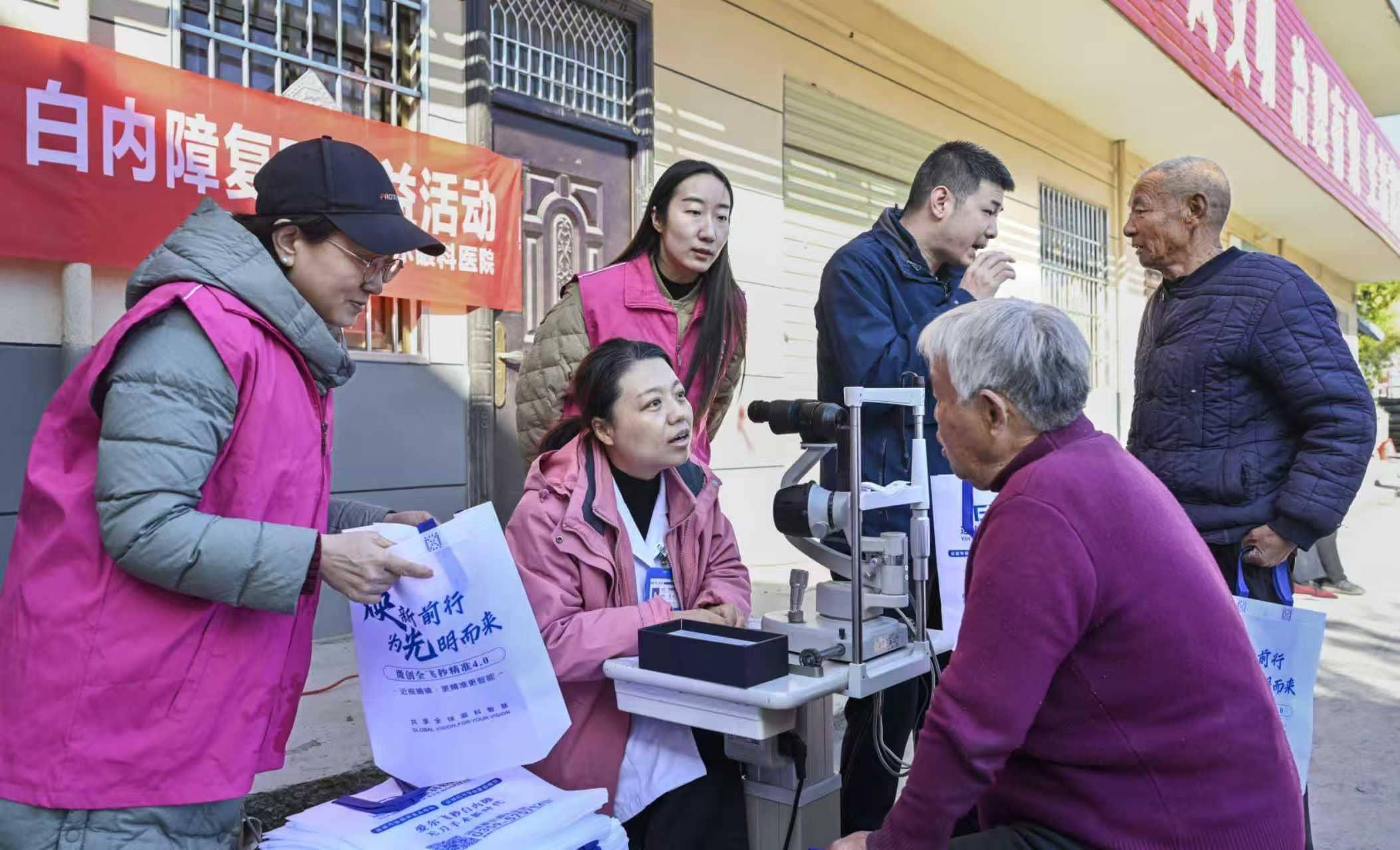 运城市爱尔眼科医护人员则耐心地为每位老人检查眼睛,讲解眼保健知识。他们细致的服务,让老人们感受到了无微不至的关怀。董云涛老师站在队伍前方教老人学手指操,她和许广平配合默契,一起喊着口号、带着节拍。老人们像一群重返童年的孩子,跟着节奏伸出双手,或轻拍肩膀,或敲打手臂。阳光洒在每一张笑脸上,那轻松愉快的笑声,仿佛让整个院子的时光都变得年轻而温暖。