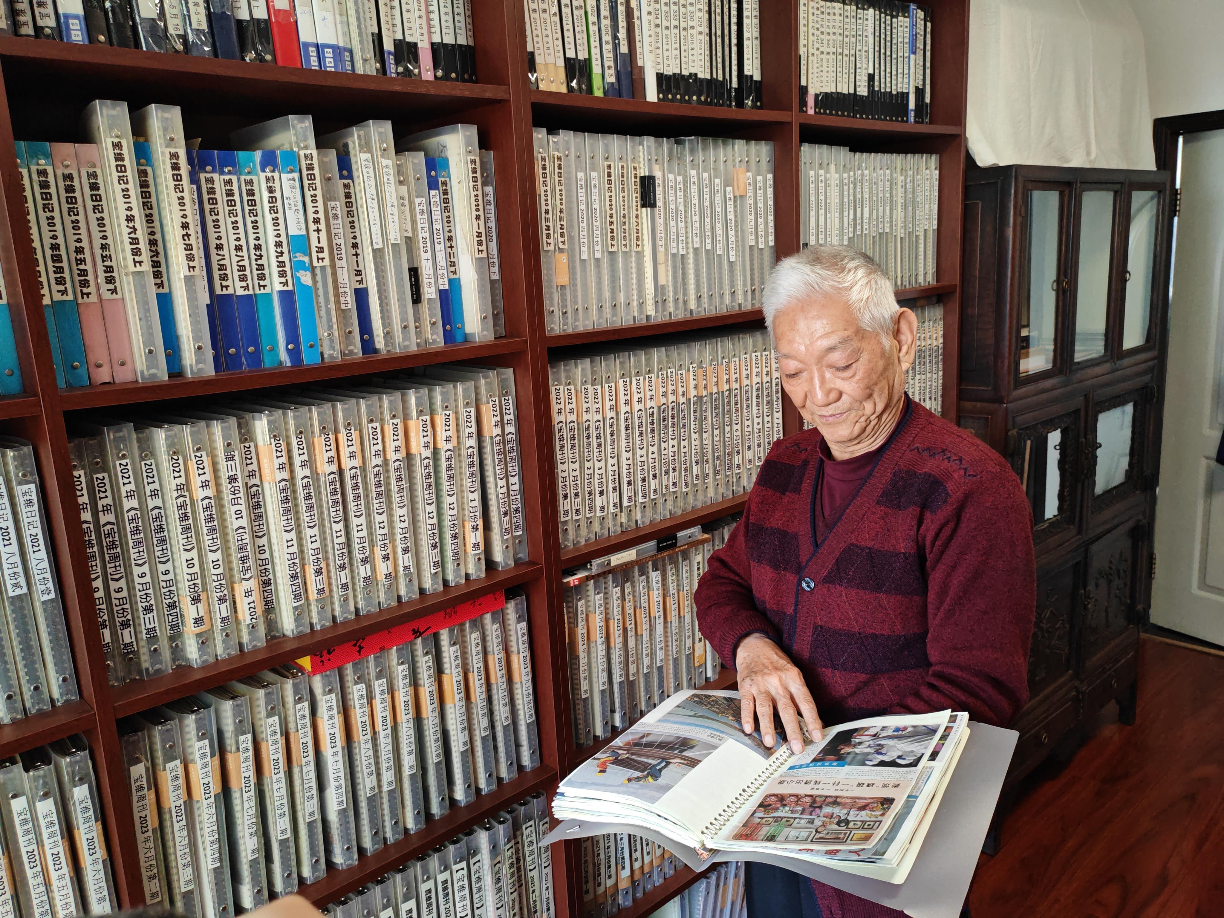 社区文化网讯(张晋 报道 通讯员 杨润德 王惠林)时值初冬,11月28日上午10点时分,初冬的暖阳洒在晋祠镇崇文苑的一户民居窗前,83岁的郭永安老人早早坐在书桌前,摊开报纸、翻出活页日记开始了一天紧张忙碌的工作,读报、选图、裁剪、整理、排版、粘贴、标注,这是他坚持了61年的日常。身后书房两侧的柜子上,1000多本标注着年月的“宝维日记”“宝维周刊”整齐有序码放,泛黄的纸页里夹着老照片、新闻剪报与手绘画稿,如同一条蜿蜒的“时光长卷”,记录着个人、家庭与时代的变迁。