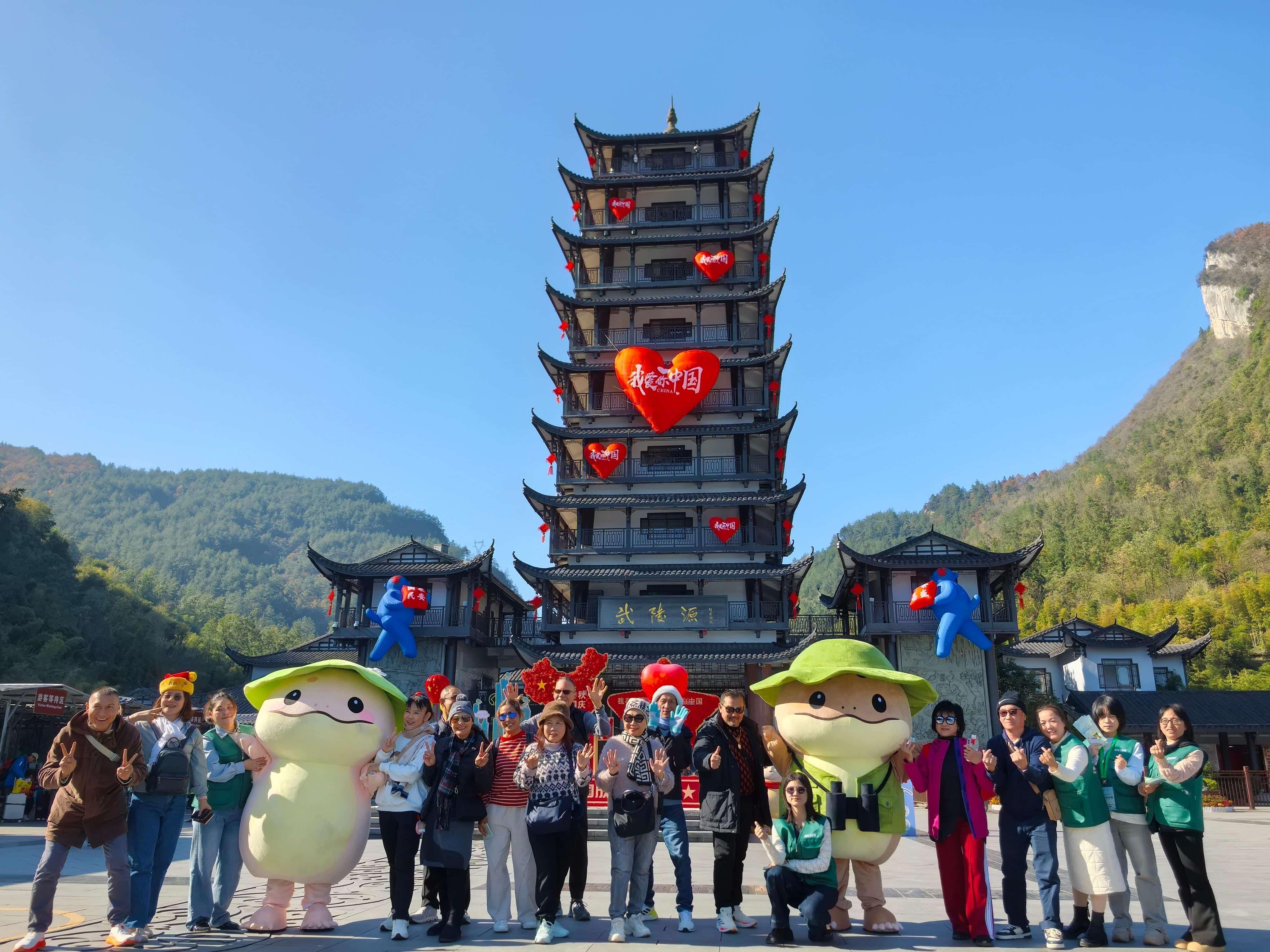 启动仪式后,“大鲵守护者”们赶赴张家界森林公园景区门口,开启了湖南张家界大鲵国家级自然保护区生物多样性保护科普宣教进“学区、景区、社区、渔区”四进活动。活动现场设置了大鲵科普展板、互动体验区,志愿者们向游客讲解大鲵的生态价值及保护意义,并通过趣味问答、生态拼图等形式增强参与感。尤其是志愿者们穿着吉祥物“鲵澧”和“鲵源”制作的人偶,穿梭在游客中间派发宣传资料,引来了很多中外游客争相合影留念,大家纷纷表示,愿意加入到保护大鲵、保护生态环境的队伍中来。