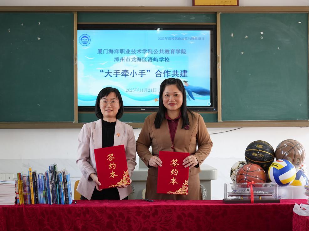 图1 厦门海洋职业技术学院公共教育学院与漳州市龙海区浯屿学校合作共建签约