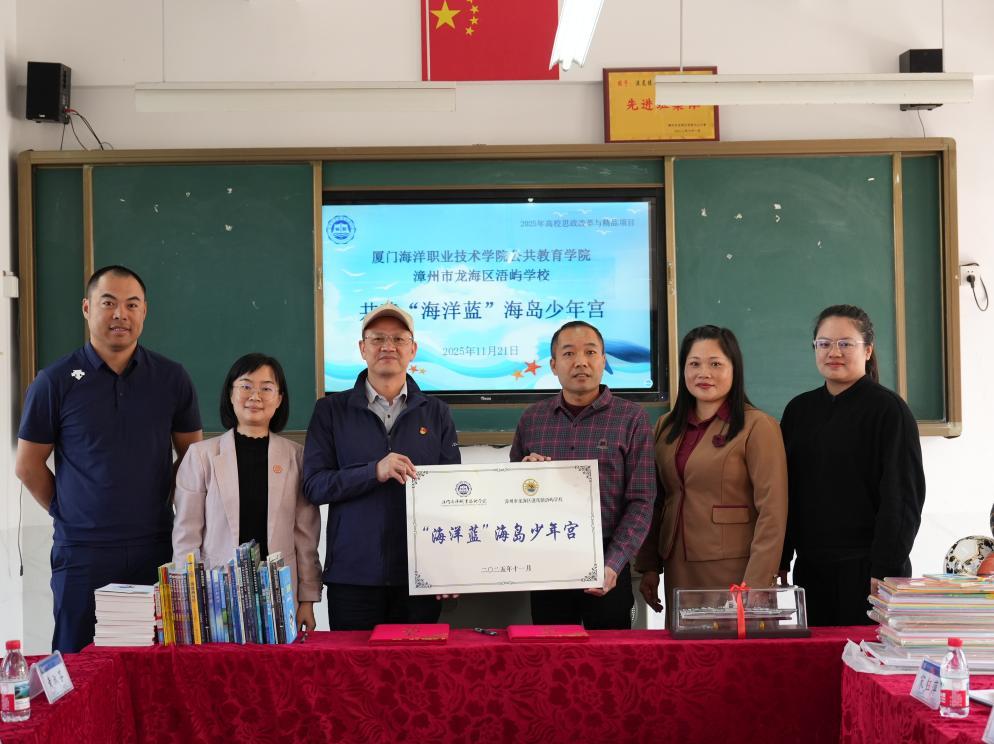 11月21日,厦门海洋职业技术学院公共教育学院师生赴漳州市港尾镇浯屿学校,开展“大手牵小手”蓝色五育共建活动。活动以“海洋蓝·公知行”为主题,通过签约合作、共建“海洋蓝”海岛少年宫、蓝色五育课堂等形式,将海洋知识、海防教育与美育体育有机融合,推进海洋文化教育共育共培。