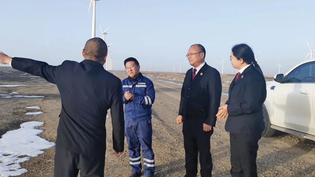 调研组一行先后走访了瓜州昊华新能源电力有限公司、甘肃中电瓜州风力发电有限公司等新能源企业,深入生产一线、控制中心等场所,实地察看企业生产经营、技术研发、市场拓展及未来规划情况。通过与企业负责人、技术骨干和管理人员面对面座谈,调研组重点询问了企业在项目审批、工程建设、知识产权保护、合同履行、劳动用工以及可能面临的法律风险等方面存在的难点、堵点问题,认真听取了企业对检察机关在优化法治化营商环境、提供精准法律服务等方面的具体需求和意见建议。此次面对面交流既传递了检察机关护航新能源产业发展的鲜明态度,也为后续靶向施策筑牢实践基础。