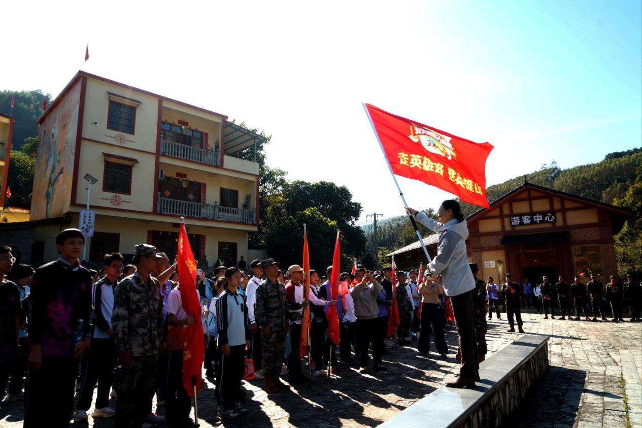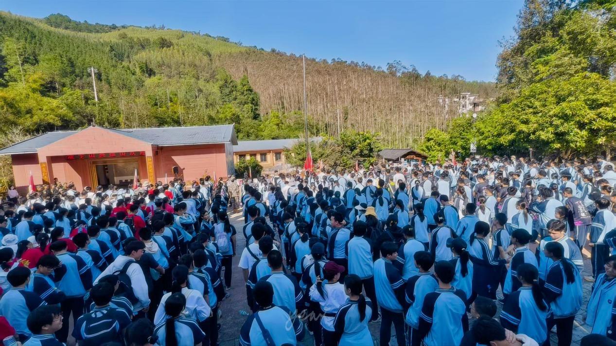 来自南宁某校的600名中学生在法卡山爱国教育基地集合