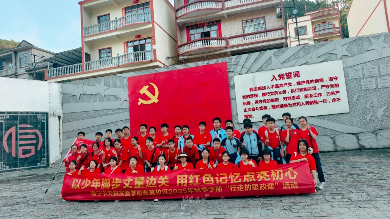 近日,在凭祥市上石镇板旺村上黎屯,依托法卡山的红色资源,吸引了来自南宁某中学的600多名学生前来开展行走的思政课堂红色研学活动。一门名为“国门思政课堂”的课程正焕发出新的生机。通过巡游边疆、描绘界碑、探寻猫耳洞、进行边境CS模拟对抗等沉浸式体验,这个边境村庄成功地将研学实践的教育意义与旅游的体验性完美融合,打破了传统乡村走马观花式旅游的局限。