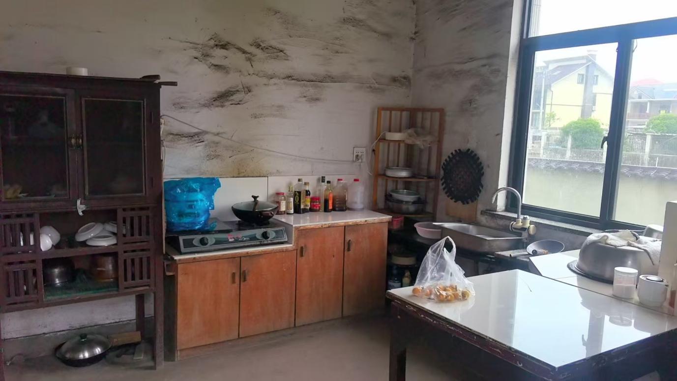 改造前的困境,曾是许多困难家庭的“心头病”。余杭街道的沈大伯今年68岁,此前的厨房是20年前从未改善过的老厨房:墙面被油烟熏得发黑发黄,砖块堆砌的灶台高低不平,炒菜时弯腰翻炒不到十分钟,腰就疼得直不起来;台面只有半平方米,切菜时必须把碗碟摞在地上,洗好的蔬菜只能放在塑料盆里临时存放。径山镇的邬大伯则饱受“水火两重天”的困扰,他的厨房没有排烟设施,每次做饭油烟弥漫全屋,呛得人直咳嗽,而裸露在外的电线就贴在潮湿的墙面上,开关插座布满黑渍,子女每次来都叮嘱他“少做饭、别出事”。走访中发现,这些家庭的厨房普遍存在共性问题:功能布局混乱、设施老化破损、安全隐患突出,且因家庭经济困难,根本无力承担改造费用。