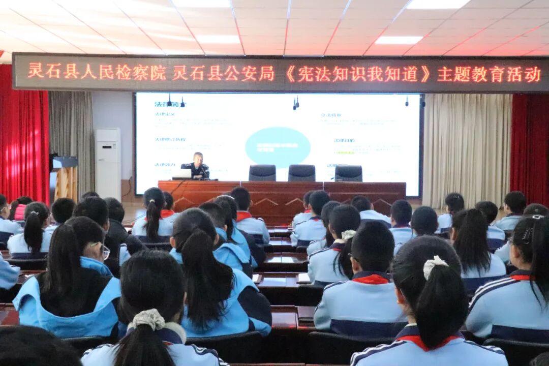 为进一步扩大宣传覆盖面,让法治精神浸润更多青少年心灵,灵石县公安局法制大队民警同步走进灵石县第五中学,开展宪法专题普法宣传。