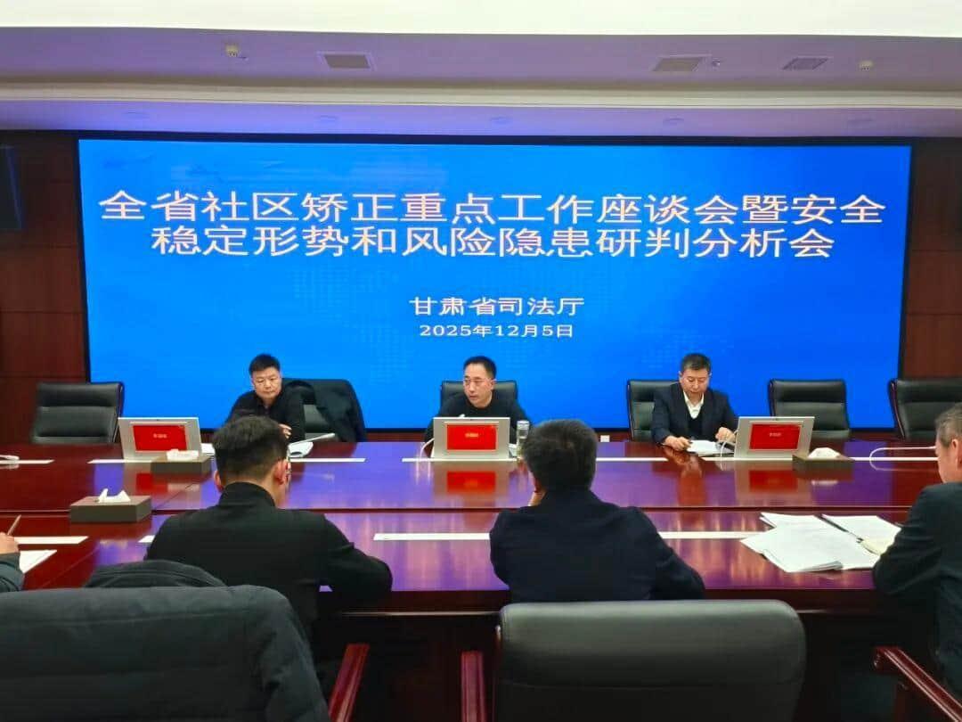 12月5日,甘肃省司法厅召开全省社区矫正重点工作座谈会暨安全稳定形势和风险隐患研判分析会。会议传达学习了有关会议精神、通报了相关情况,系统总结全年社区矫正工作成效,科学研判分析当前社区矫正工作面临的安全稳定形势和存在的风险隐患,安排部署下一阶段重点工作任务,部分市、县司法局围绕今年重点工作和调查评估、风险评估“两项”试点工作交流了经验。省司法厅党委委员、省监狱管理局党委书记、局长李嘉树出席会议并讲话。