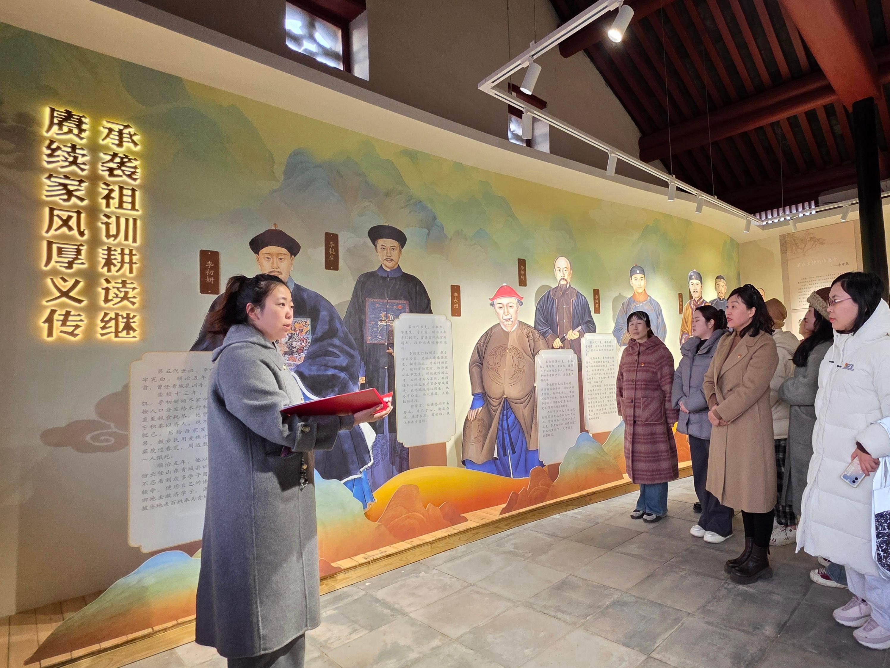 参观现场,党员教师们循着家风传承的足迹沉浸式感悟。步入馆内,党员教师们首先驻足于“李氏家族贤宦群像”展墙前,听讲解员介绍李永绍及其家族“耕读传家、清廉继世”的故事。在“家训墙”前,大家逐字品读“教子弟以读书为第一要务”的训诫,结合小学教育工作交流感悟。