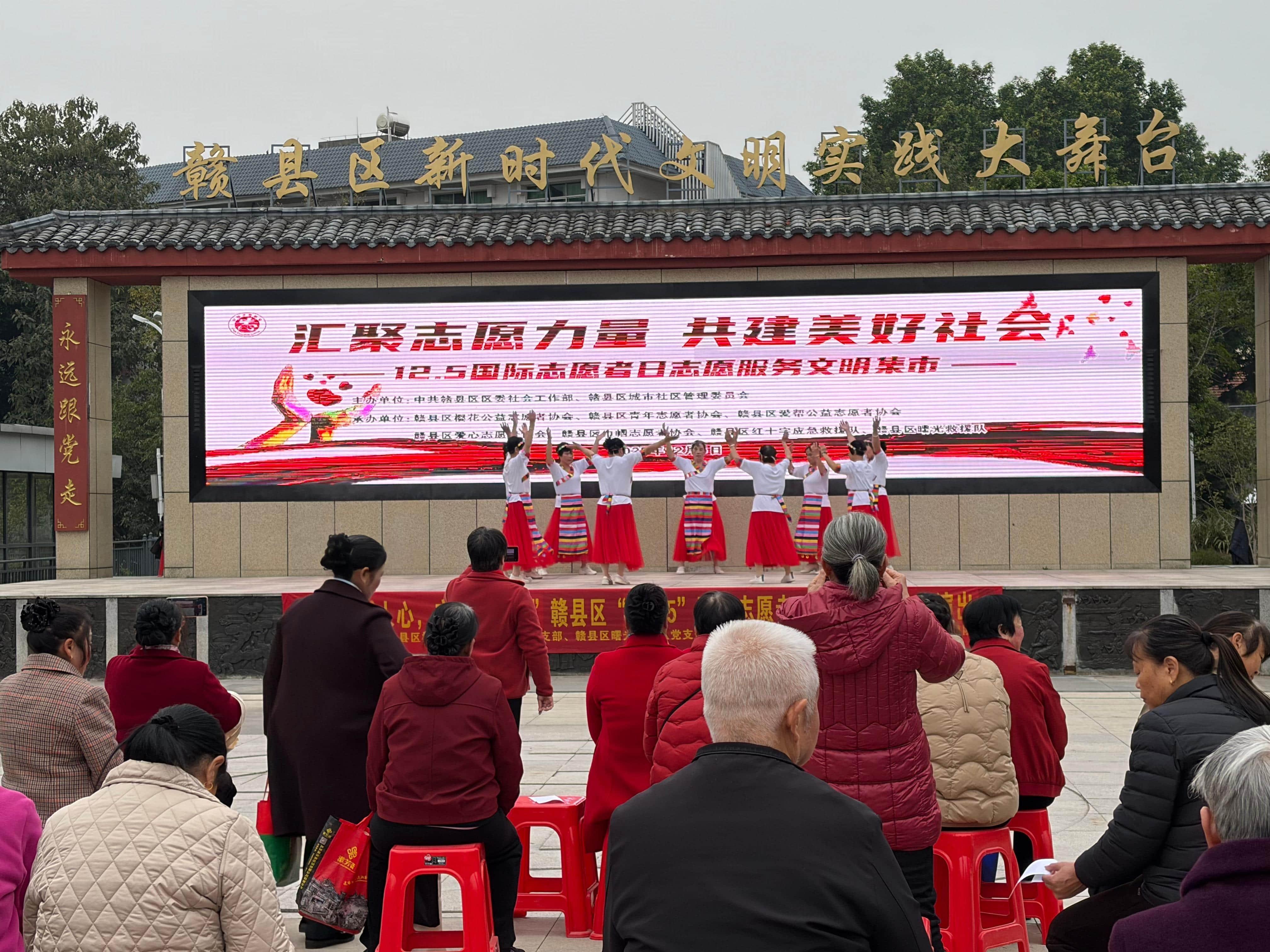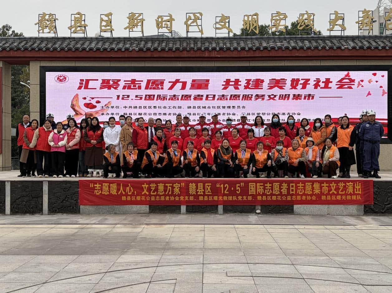 社区文化网讯(刘群卫报道 通讯员 戚培春 谢远昌)12月5日,在第40个国际志愿者日到来之际,赣州市赣县区在新时代文明实践中心广场举办“汇聚志愿力量 共建美好社会”主题志愿服务文明集市活动。活动由区委社会工作部主办,区樱花公益、青年、爱帮、爱心、巾帼志愿者协会及红十字应急救援队、曙光救援队联合承办。通过文艺展演、便民服务、知识普及、互动体验等多种形式,将志愿服务送到群众身边,营造了人人参与、互助友爱的浓厚社会氛围。