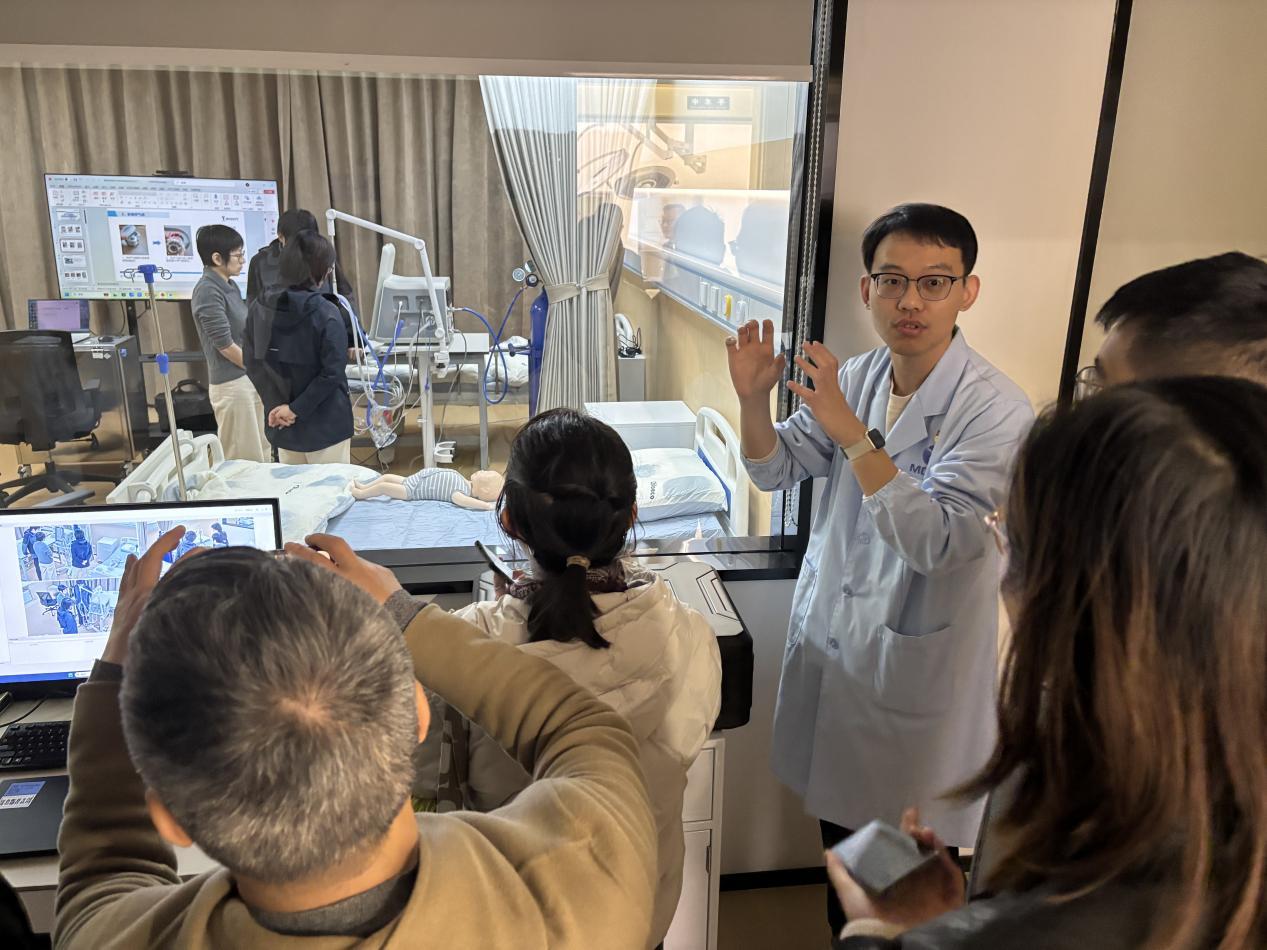 浙江省医疗器械检验研究院科技人员正向记者介绍可用性工程实验室检测原理。
