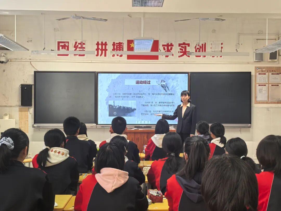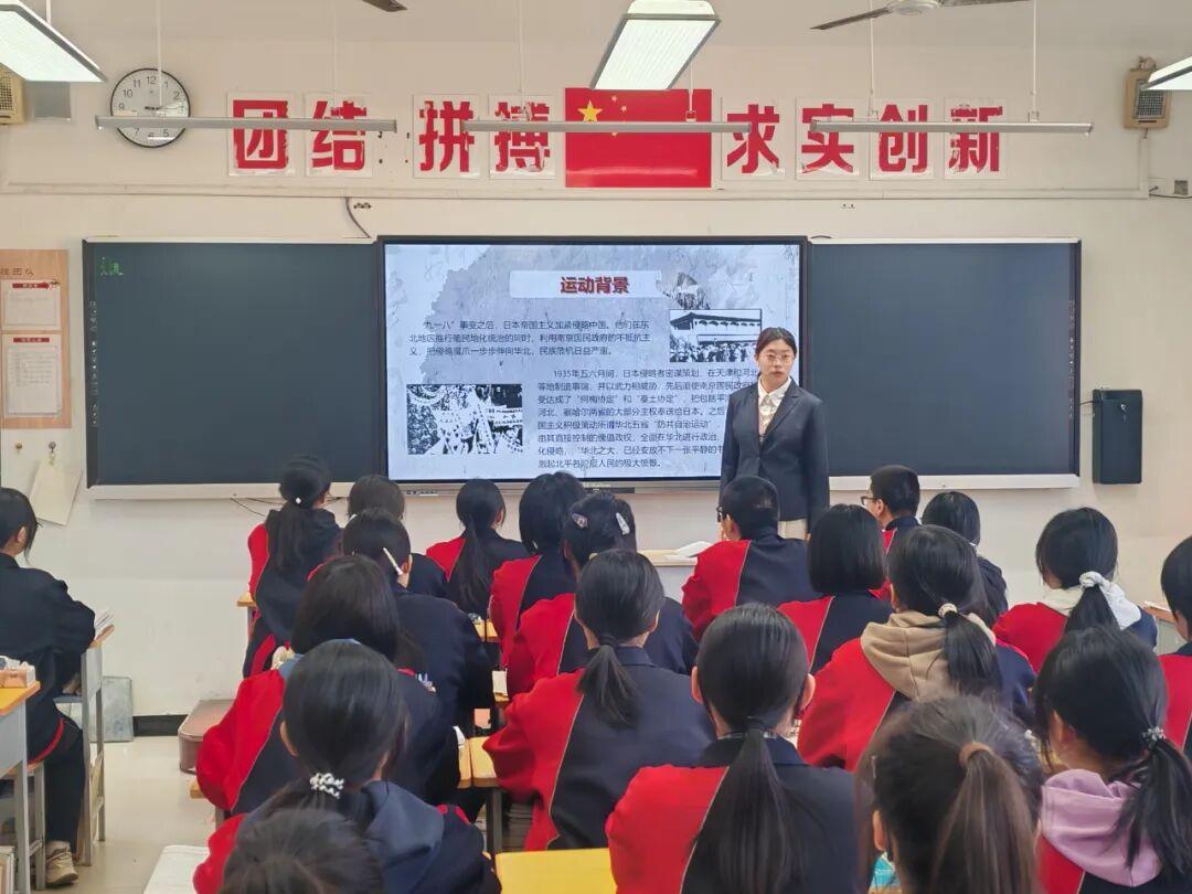 班会伊始,各班通过播放历史纪录片片段、展示图文资料、阅读历史材料等形式,带领同学们共同回顾了1935年12月9日那段波澜壮阔的历史。在中国共产党的领导下,青年学生挺身而出,举行了声势浩大的抗日救国示威游行,掀起了全国抗日救国新高潮。同学们深刻感受到在那个民族危亡的紧要关头,中国青年学子所展现出的不畏强暴、追求真理、勇于抗争的磅礴力量。
