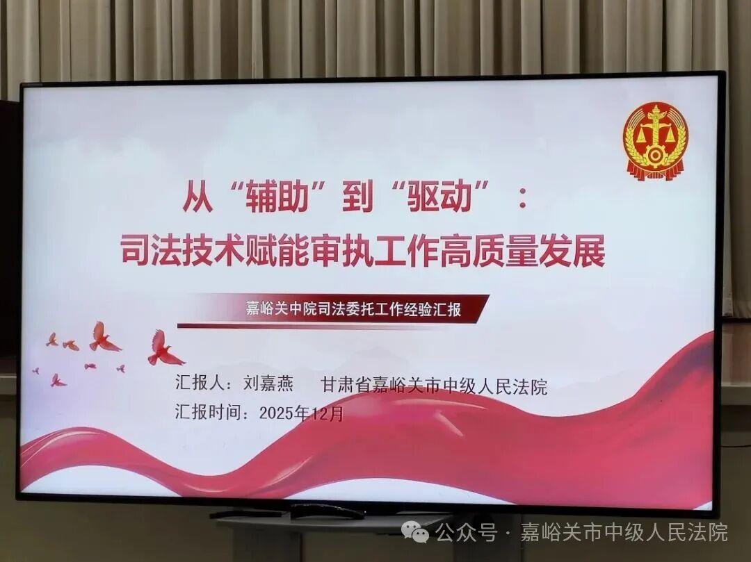 培训班邀请甘肃省嘉峪关市中级人民法院司法技术处副主任、四级调研员刘嘉燕授课。她以《从“辅助”到“驱动”:司法技术赋能审执工作高质量发展》为题分享了创新做法。这是继最高法院、甘肃高院等相关培训班后,她第四次分享该院的司法技术创新做法。
